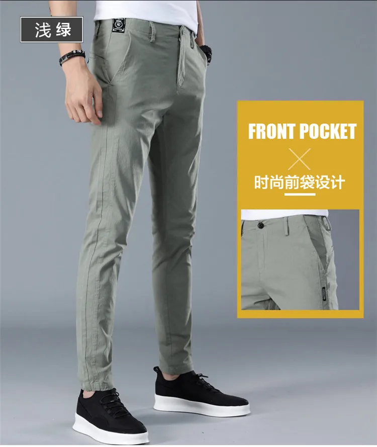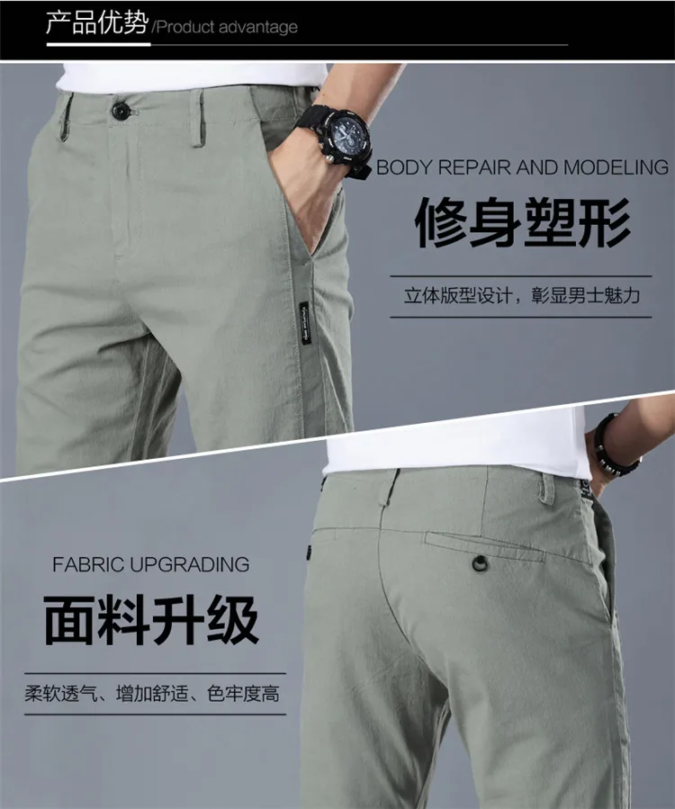 Брюки мужские повседневные деловые, брендовые классические прямые длинные модные дышащие штаны, 100 хлопок