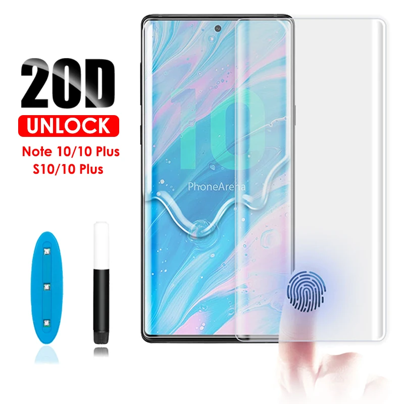 УФ-жидкий клей стекла для Samsung Galaxy Note 20 Ультра 10 9 8 S20 ...