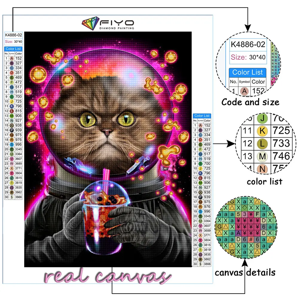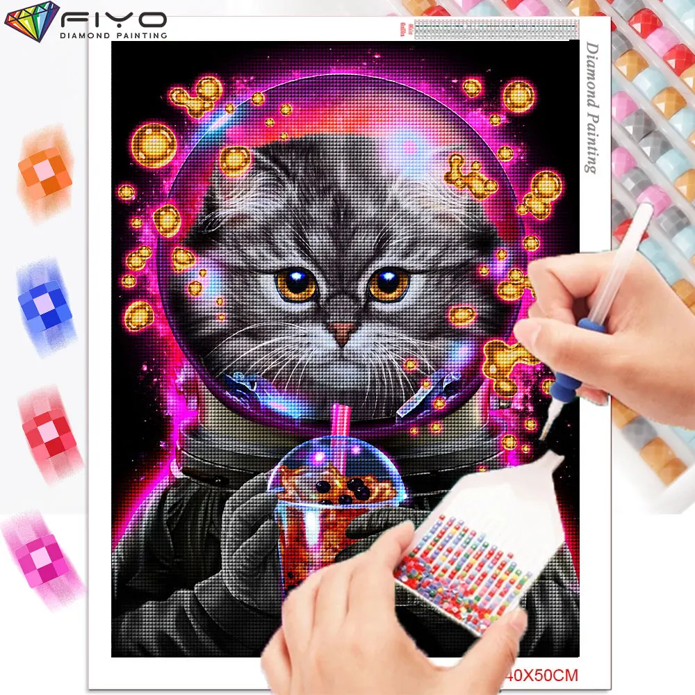 Алмазная живопись Мультяшные животные Кот искусство Алмазная вышивк...
