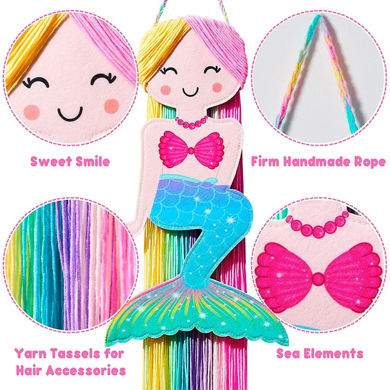 Вязаные банты для волос с русалкой, зажимы для волос для девочек, заколка, подвесной органайзер, держатель ленты фетровые поделки, детские украшения для волос
