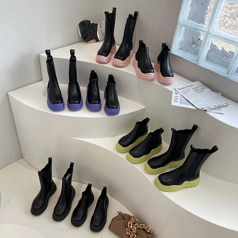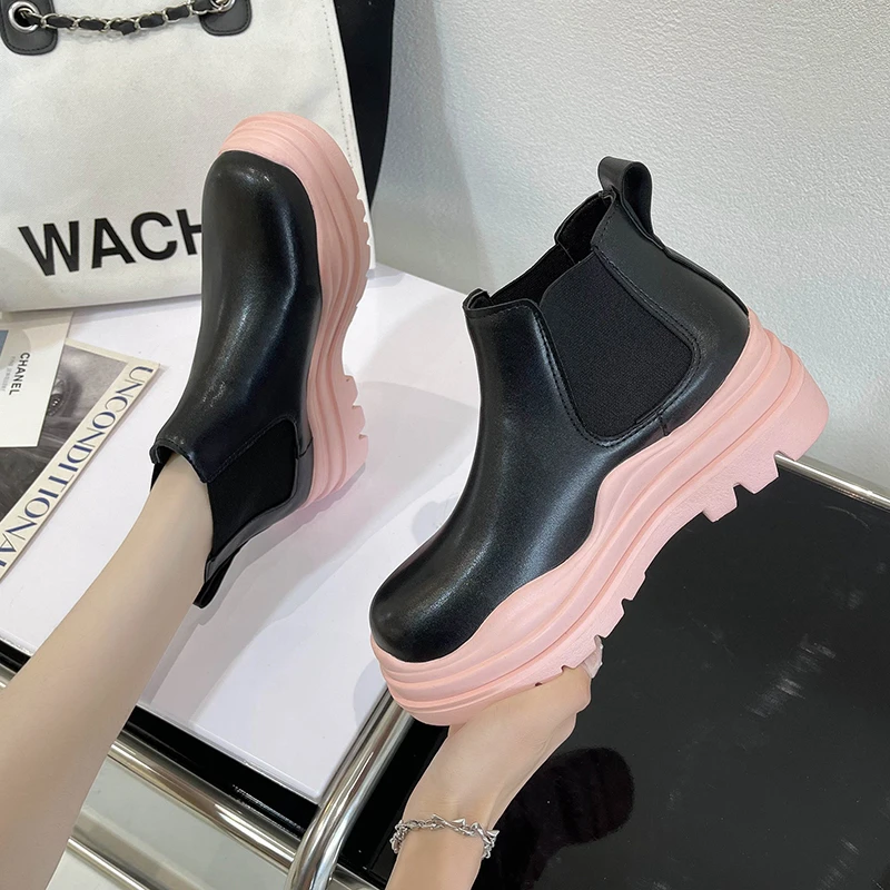 Женские ботильоны челси из искусственной кожи, осенние короткие ботинки, модная женская обувь на толстой платформе, Женские Повседневные слипоны, новинка 2021
