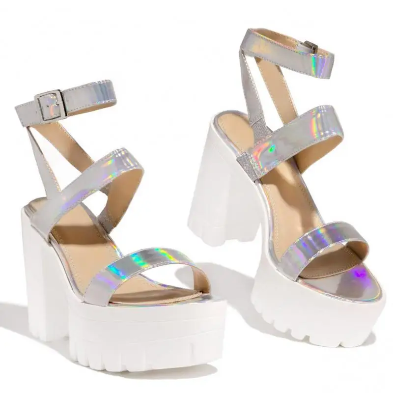 Женские босоножки на высоком каблуке, босоножки в стиле панк, с ремешком на щиколотке, с открытым носком, на платформе, большие размеры до 43, 2021