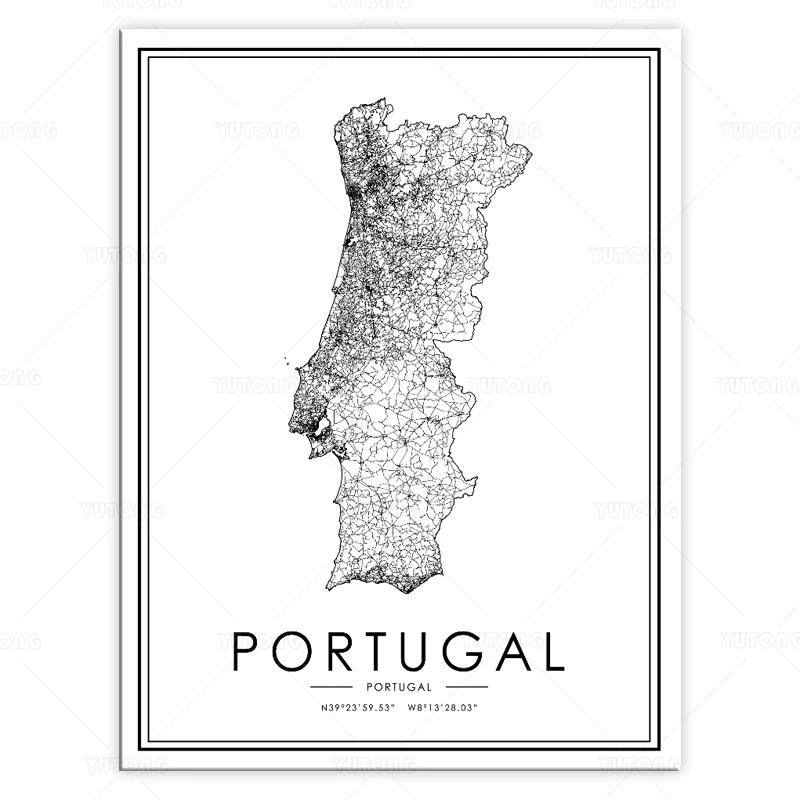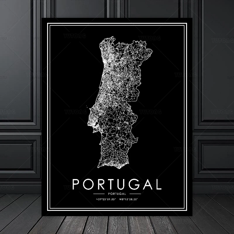 Карта Португалии по стране, украшение для гостиной в скандинавском стиле, холст, плакат, Современный домашний декор, Настенная картина с рамкой