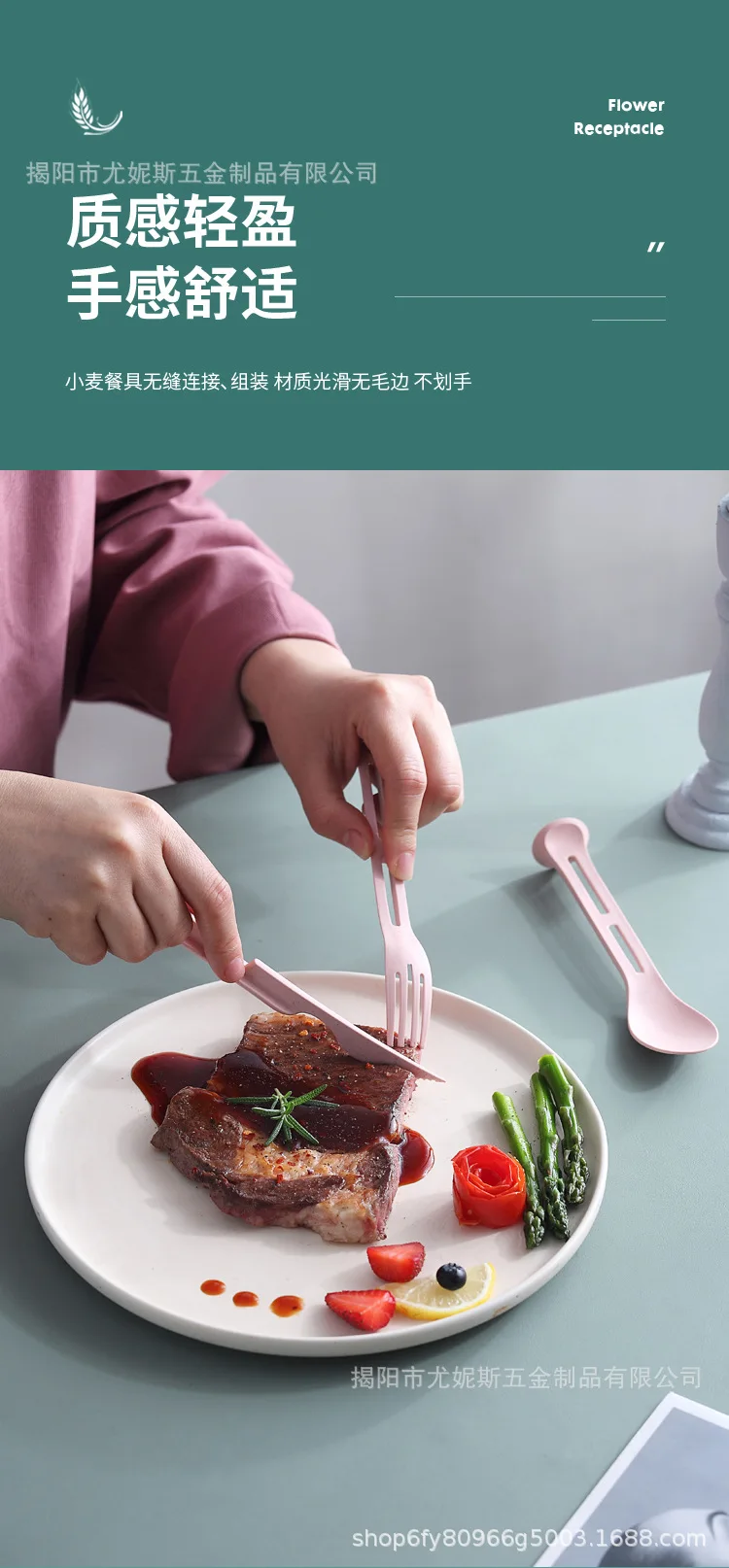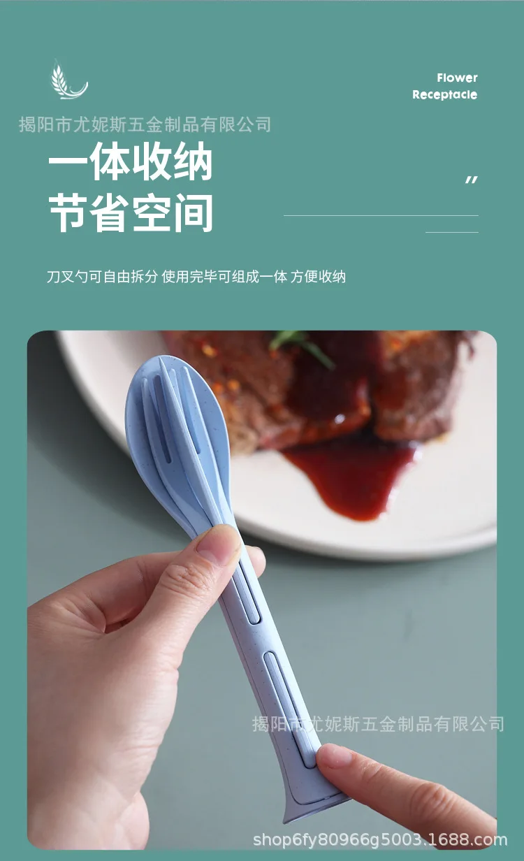 3 в 1 портативный набор столовых приборов Пшеничная солома эко-мате...