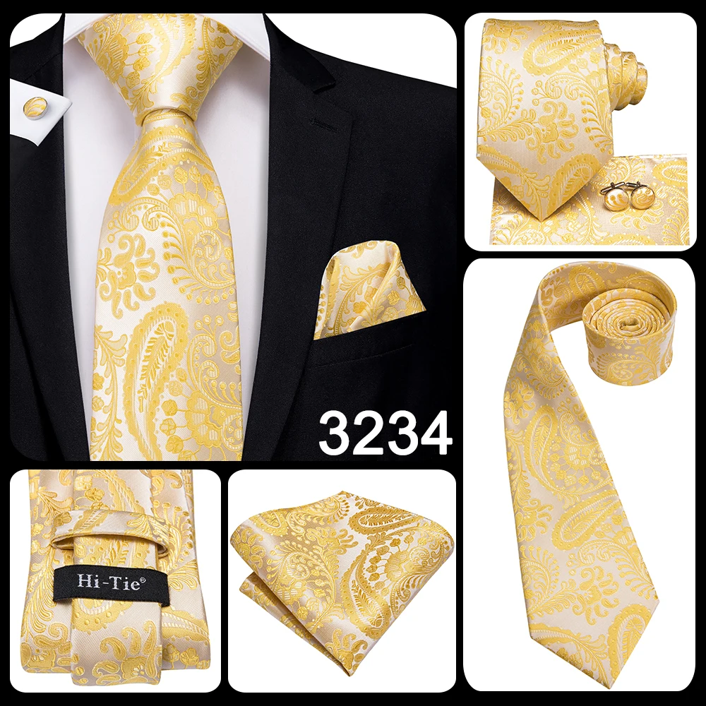 Hi-Tie 8,5 см Роскошный желтый однотонный полосатый Пейсли 100% Шел...