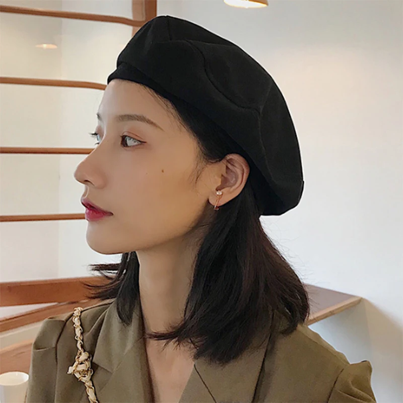 2021 берет для девушек французский художник теплая шерстяная зимняя шапка бини Ретро винтажный простой берет однотонная элегантная женская зимняя шапка