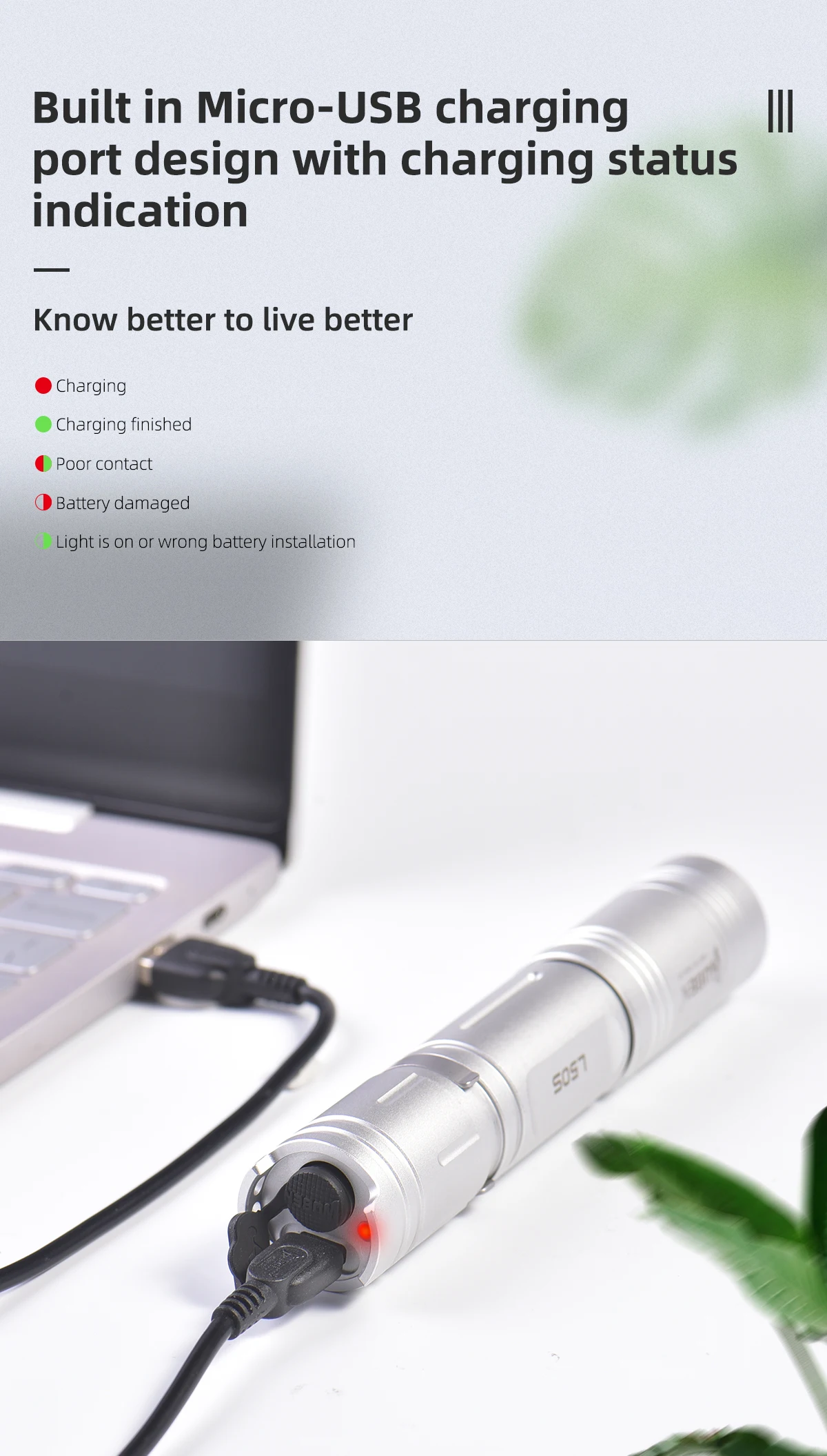 L50S имеет водонепроницаемость IPX8 и может безопасно использоваться при сильном дожде. Он также может быть водонепроницаемым, если крышка usb-порта не покрыта! Прочный алюминиевый корпус и продуманная форма делают его очень удобным и удобным для переноски. Основываясь на этих дизайнах, пользователь может использовать его в различных средах, таких как охота, туризм, езда на велосипеде и т. Д.