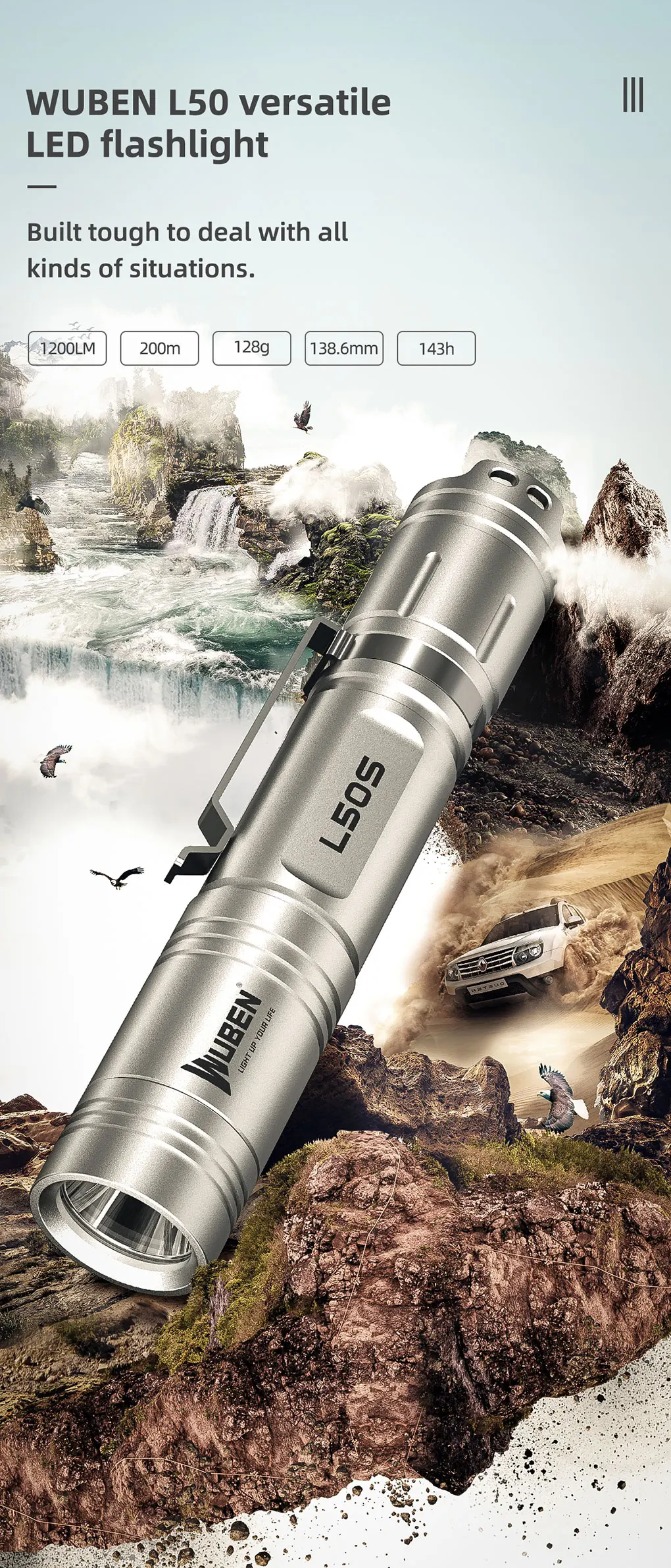 Светодиодный фонасветильник WUBEN L50S, фонасветильник для повседневного использования, 1200 люмен, USB перезаряжаемый аккумулятор 18650, водонепроницаемый ффонарь IP68