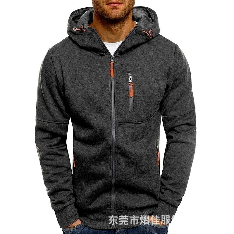 Толстовка мужская с капюшоном, повседневная кофта на молнии, с диаг...