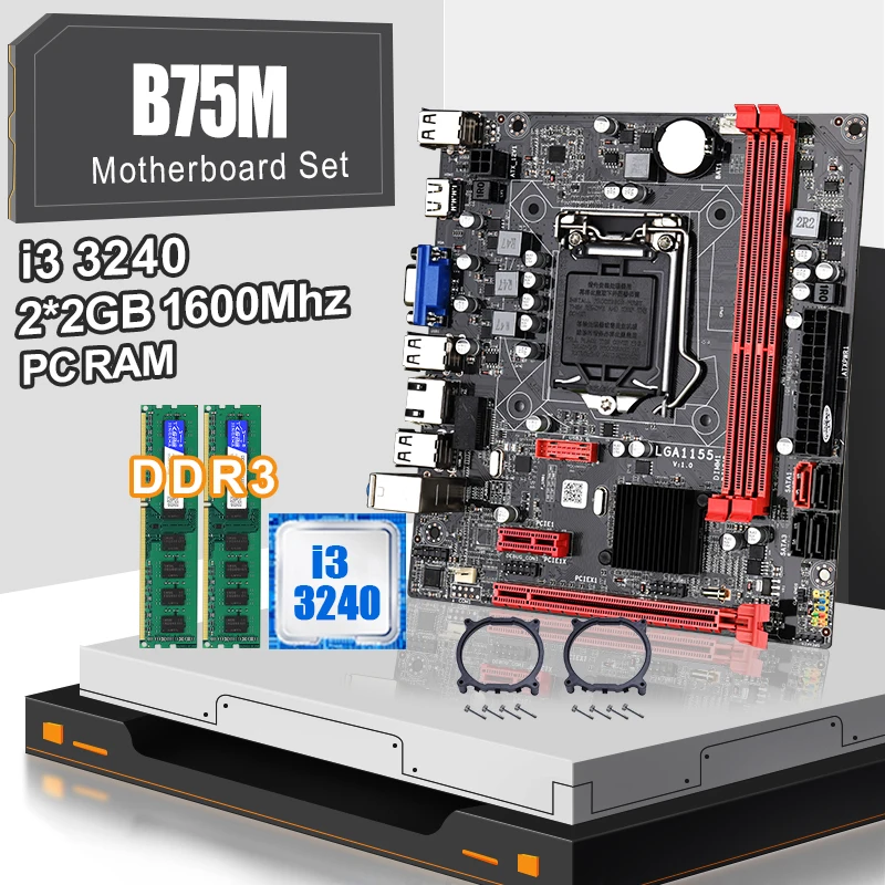 B75M Настольный набор материнских плат LGA1155 с intel i3 3240 двухъядерный процессор 3,4 ГГц и DDR3 2 Гб 1600 МГц ПК Оперативная память * 2 VGA HDMI USB3.0