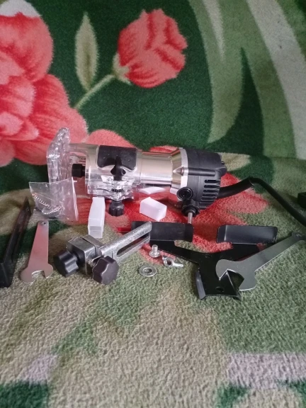 Ставлю три звезды за то, что опора фрезера диаметром 65, сам фрезер диаметром 63,8. нормально зажать его в комплектной опоре не представляется возможным. Проходной диаметр гайки 7,8 мм чтобы поставить фрезу 8мм кроме цанги нужно новую гайку, либо рассверливать имеющуюся. Копировальный уголок кривой толку от него нет. Фреза комплектная опасна для использования - не пропаяны твердосплавные пластинки. В общем такой девайс требует приложить руки в варианте из коробки - бестолковая игрушка. спасибо хоть включается. к покупке не рекомендую