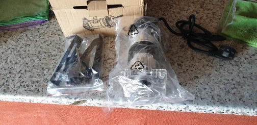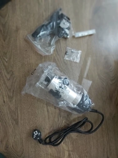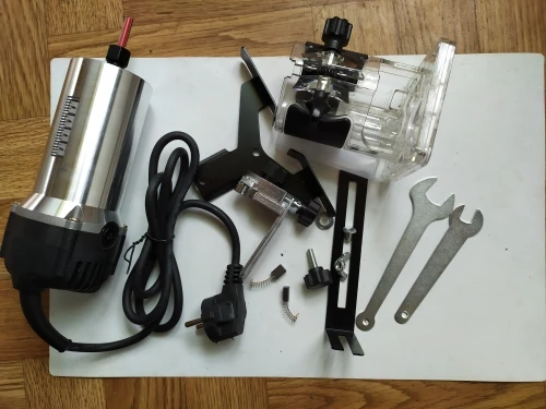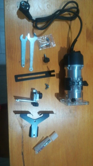 Доставка быстрая, упаковка не фонтан, коробка развалилась сразу, если бы не упаковано было сверху в пластиковый пакет, то все мелкие детали потерялись бы в дороге. Фрезер работает неплохо, относительно мощности 1000 w, конечно есть сомнения. На фрезере нет никаких маркировок и табличек, инструкция так же отсутствует.