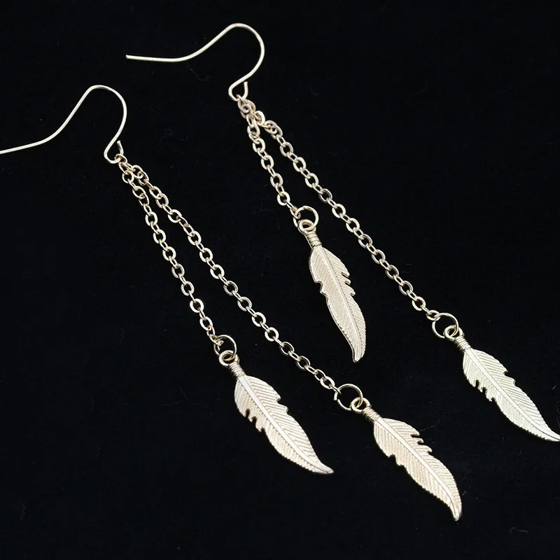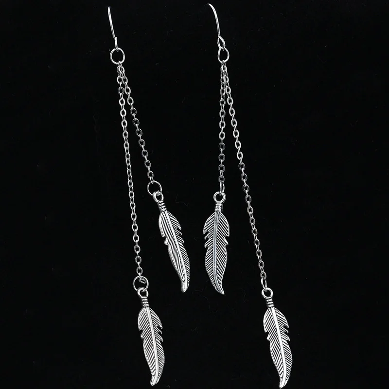 Висячие серьги в богемном стиле, Винтажные Украшения для ушей, перо...