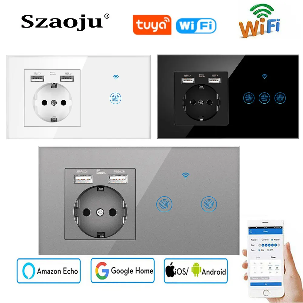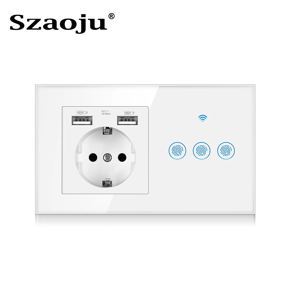 Светильник енная панель из закаленного стекла 433 МГц, сенсорный смарт-выключатель с разъемом USB, комбинированная сенсорная кнопка, 16 А, 220 В