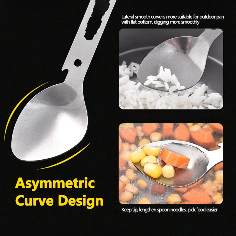 3. Мультиинструмент для выживания при еде изготовлен из прочной нержавеющей стали 304, здоровый и простой в уходе.