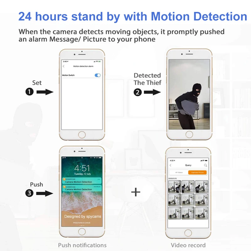 1. Он может быть немного Горячая при выполнении работ для этой камеры, так как она не имеет защитный чехол на устройстве, но, пожалуйста, примите во внимание, не волнуйтесь, мы можем обещать, что это не выходит за пределы нормы и 100% безопасно! 2. У этой камеры нет встроенной памяти. Если вы хотите лучше сохранить содержимое камеры или записать информацию. Используйте оригинальную карту памяти 8G-128G. Чтобы обеспечить нормальное использование мини-камеры, пожалуйста, не используйте поддельные карты, рекомендуется покупать с нашей картой памяти, спасибо.