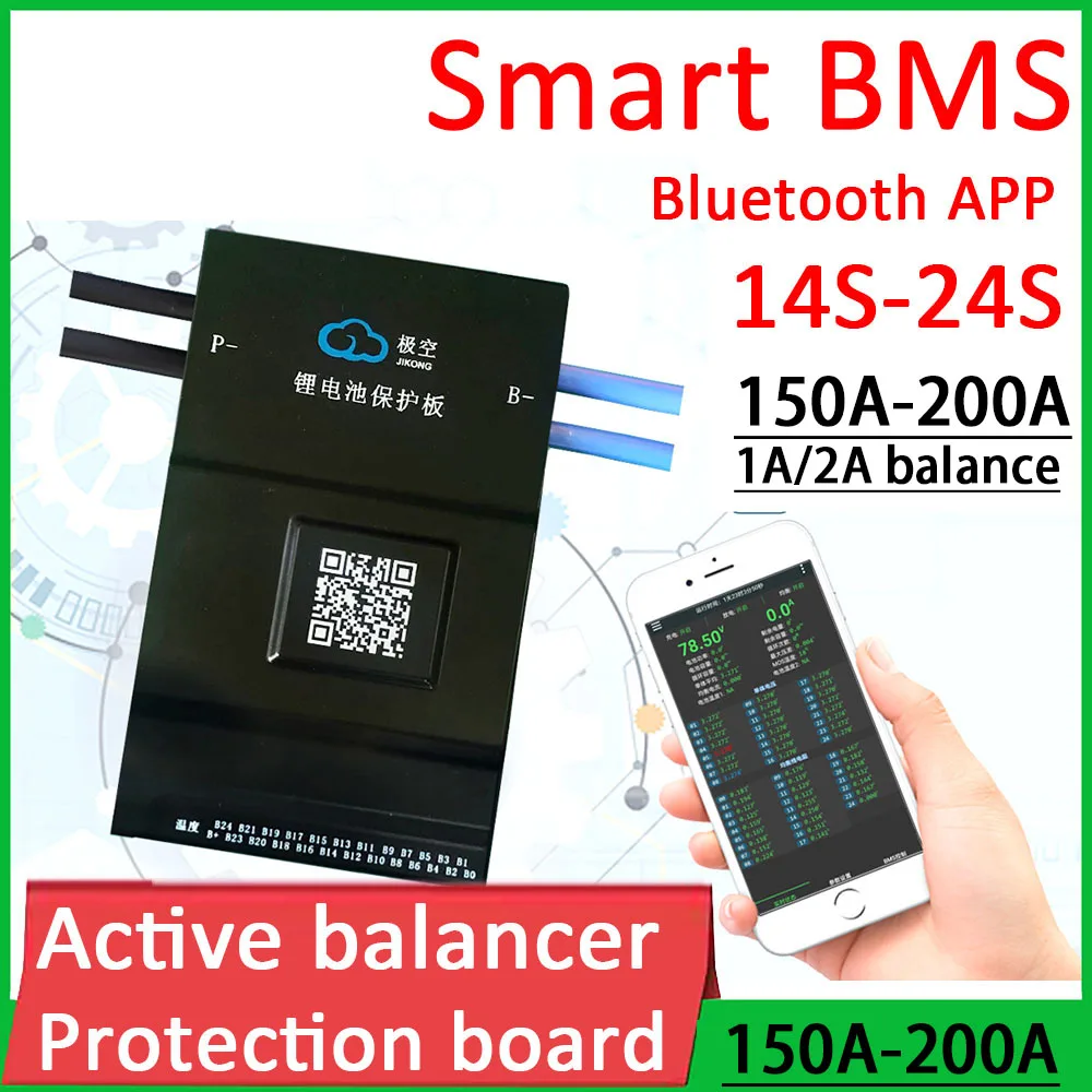 Lifepo4 Li-Ion LTO 48V Smart 13S ~ 24S плата для защиты аккумулятора с активным балансом Bluetooth APP BMS 14S 16S 17S 20S 60A 150A 200A Lifepo4 Li-Ion LTO 48V 60V 72V JK 1A 2A баланс в стиле 20-х г 60В 72В