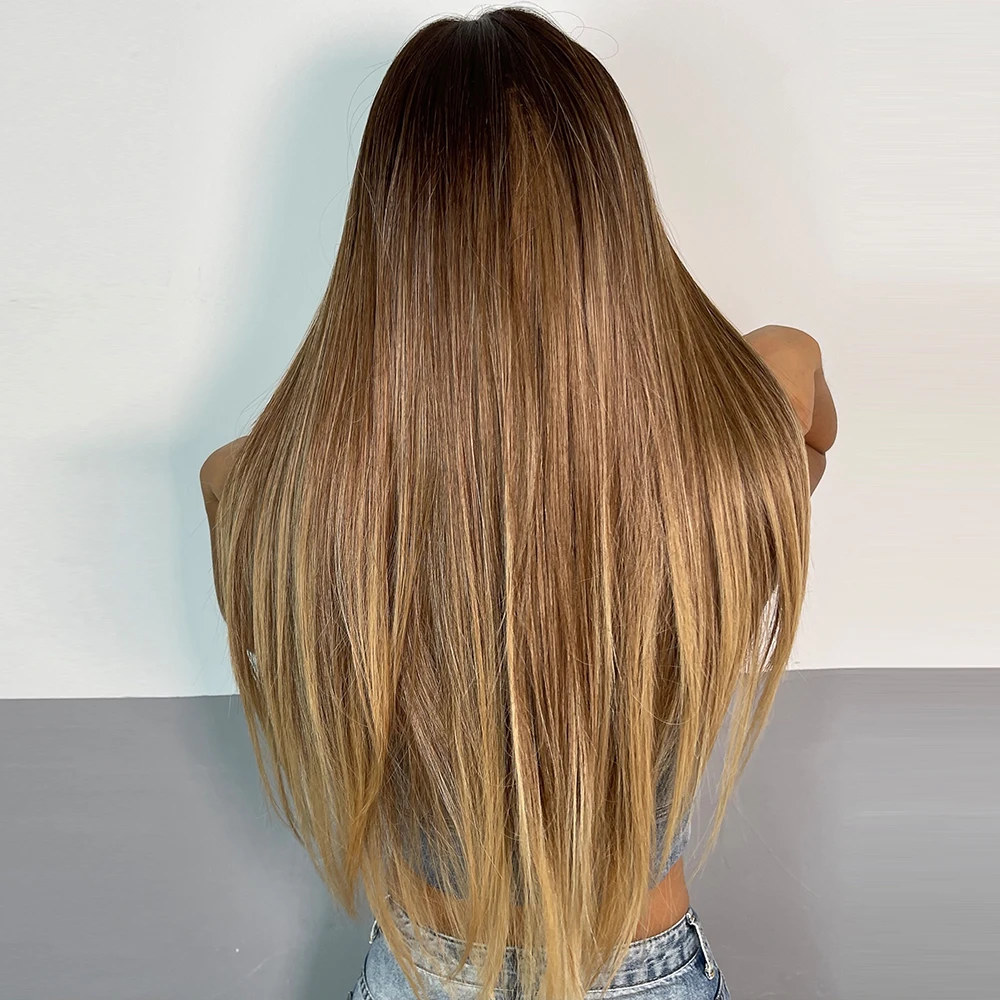 Длинные Синтетические парики для волос HENRY MARGU, коричневые и светлые прямые парики с челкой для косплея, вечерние термостойкие парики для женщин
