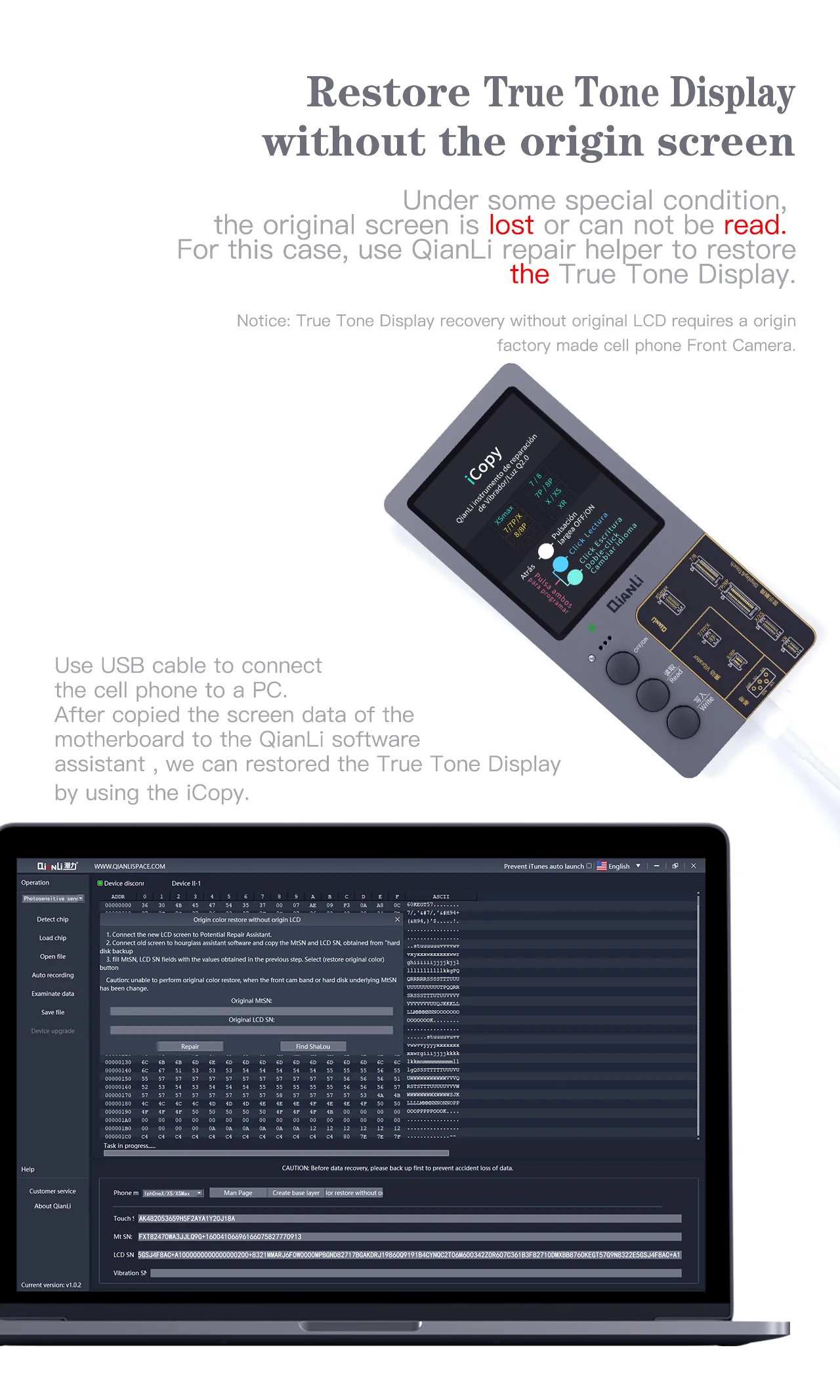 Оригинальный цветной программатор Qianli iCopy Plus для ремонта ЖК-экрана телефона 11 Pro Max XR XSMAX XS 8P 8 7P 7 Ремонт вибрации/сенсорного экрана