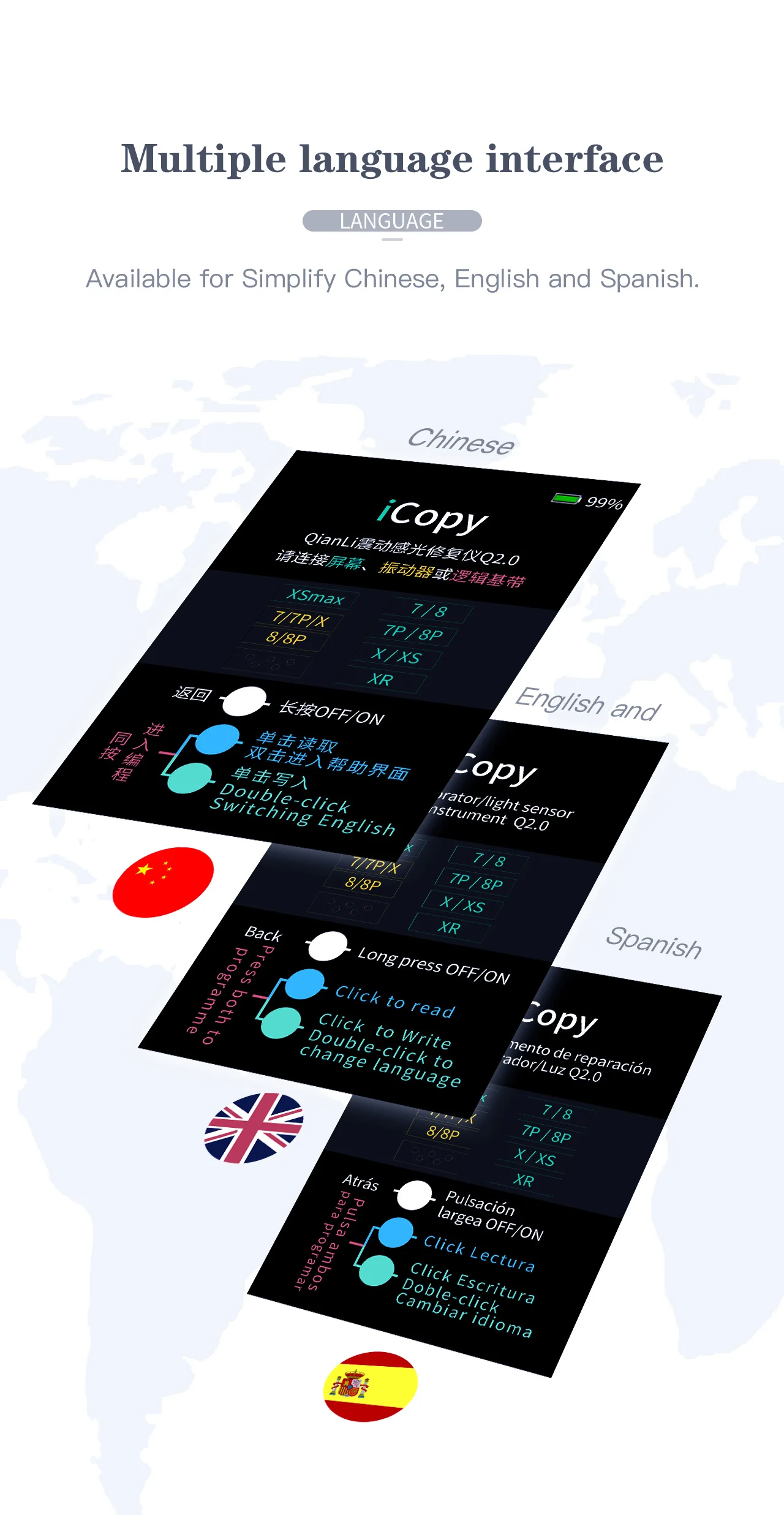 Support 2Chinese, English, Spainsh