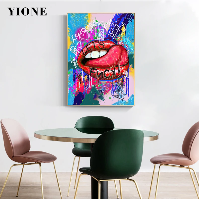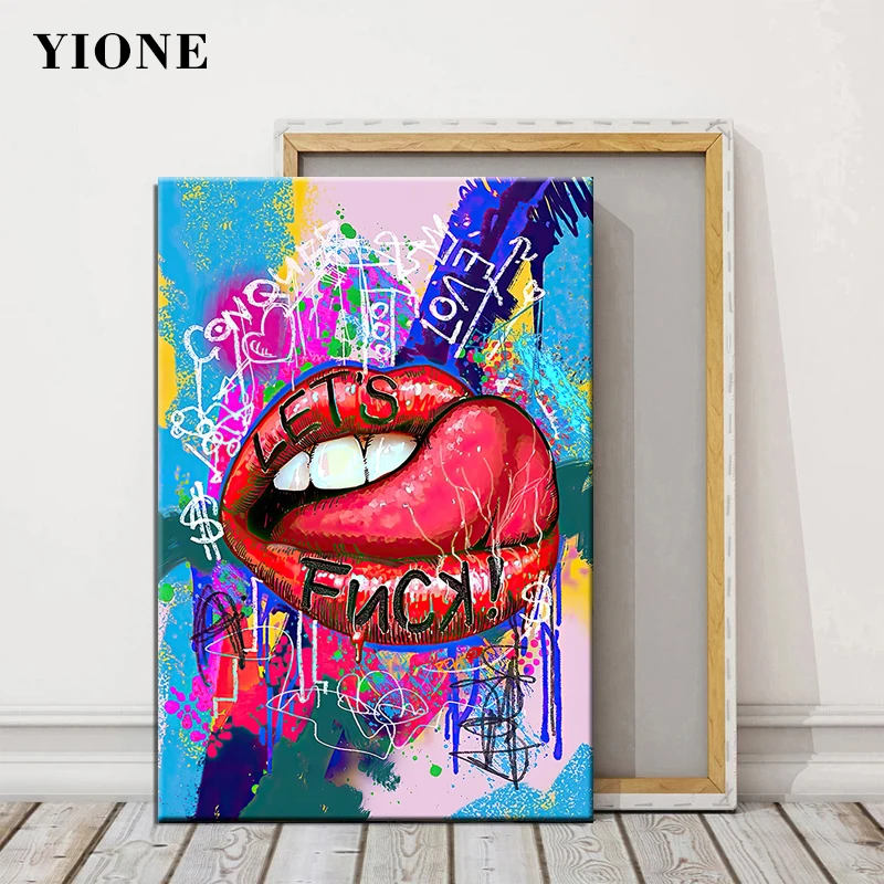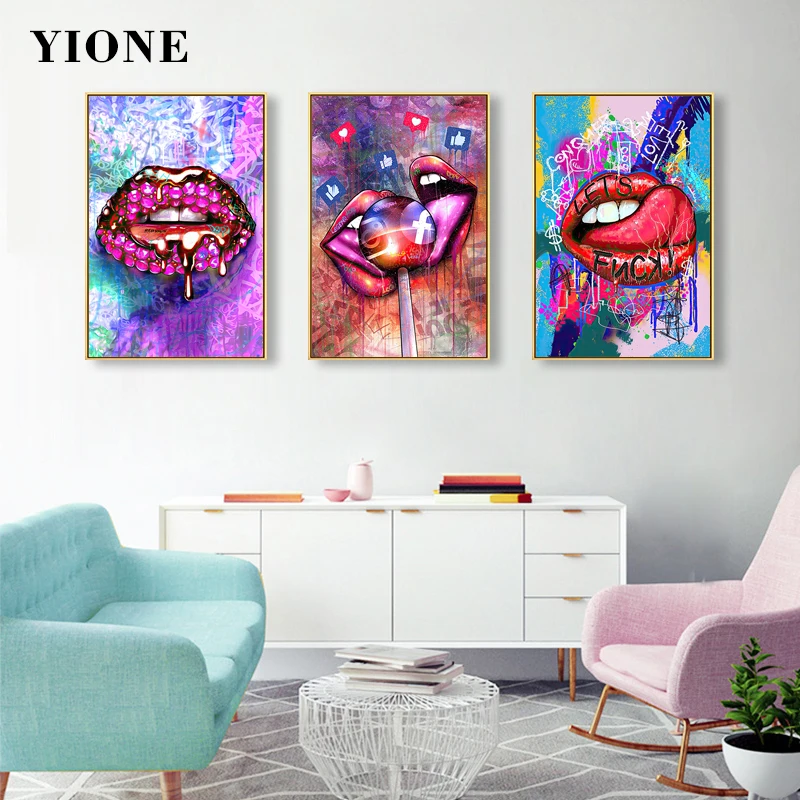 Красочные постеры и принты сексуальных губ, абстрактные граффити на заказ, искусство, рот, леденец, холст, картина на стену, украшение для дома, живопись