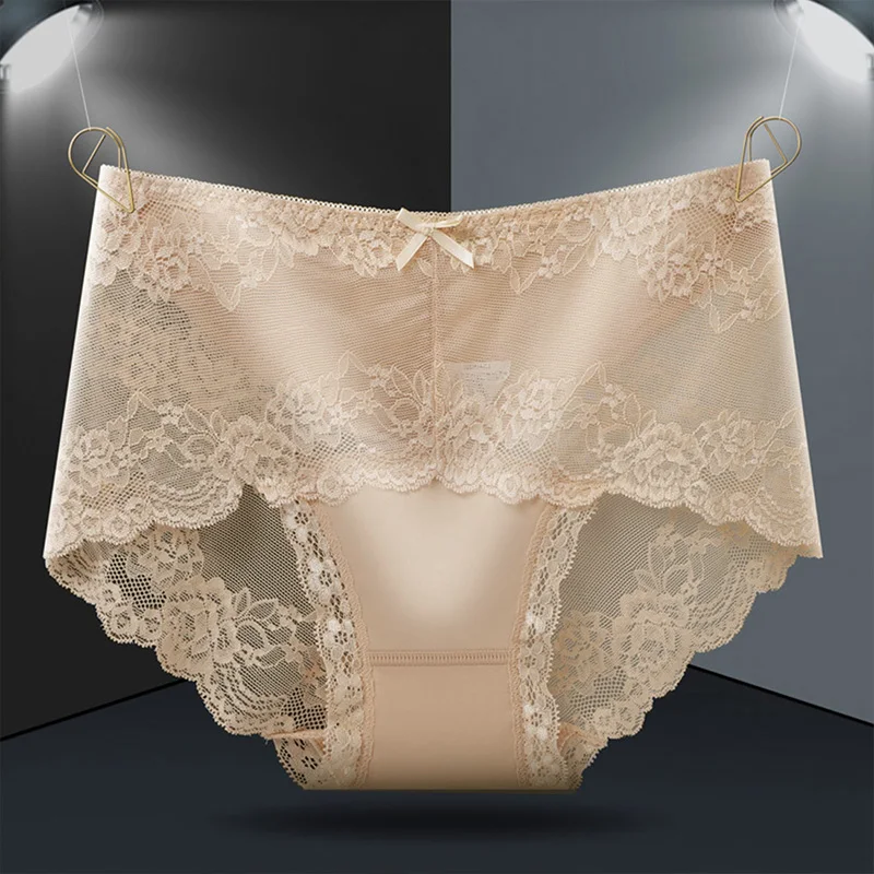 Женские трусики размера плюс, сексуальное кружевное Прозрачное нижнее белье, бесшовные трусики со средней талией, хлопковые брифы женское белье для здоровья