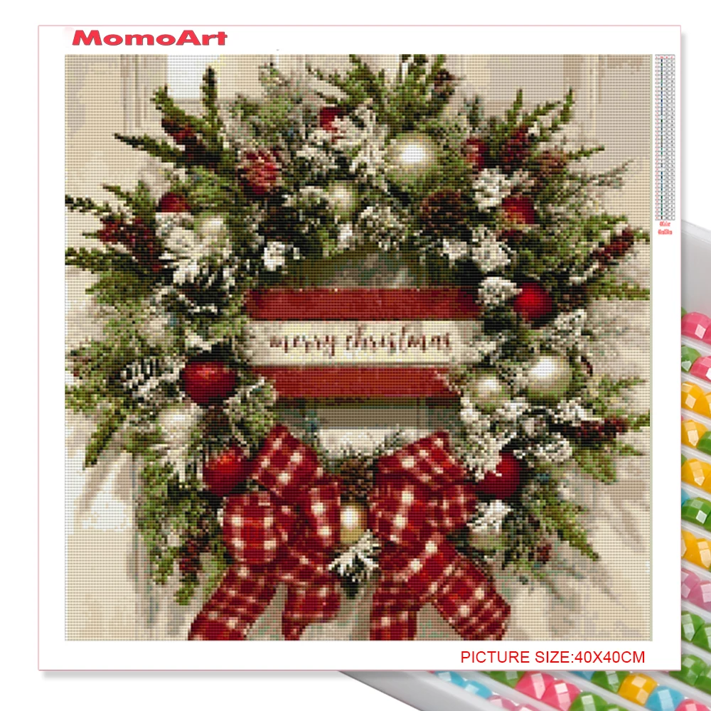 MomoArt Алмазная вышивка, полный квадратный Рождественский венок, 5D алмазная живопись, зимняя мозаика, картина стразы, декор для комнаты