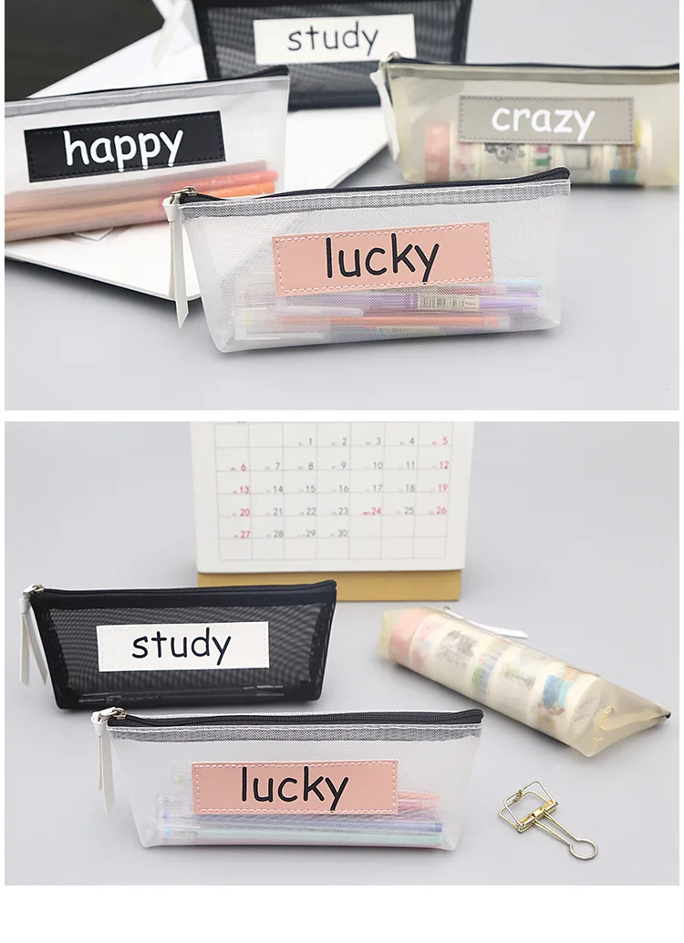 Прозрачный чехол для карандашей, Сетчатая Сумка для карандашей для девочек, подарок, офисные и школьные принадлежности, милые канцелярские принадлежности, чехол для карандашей на молнии, косметичка