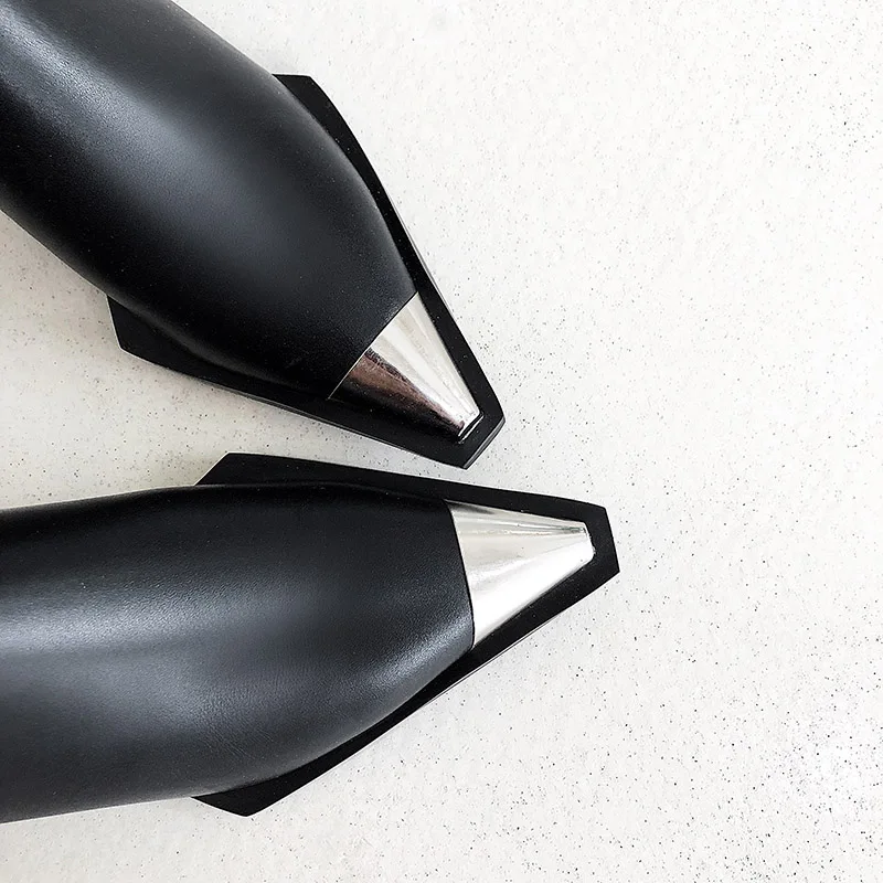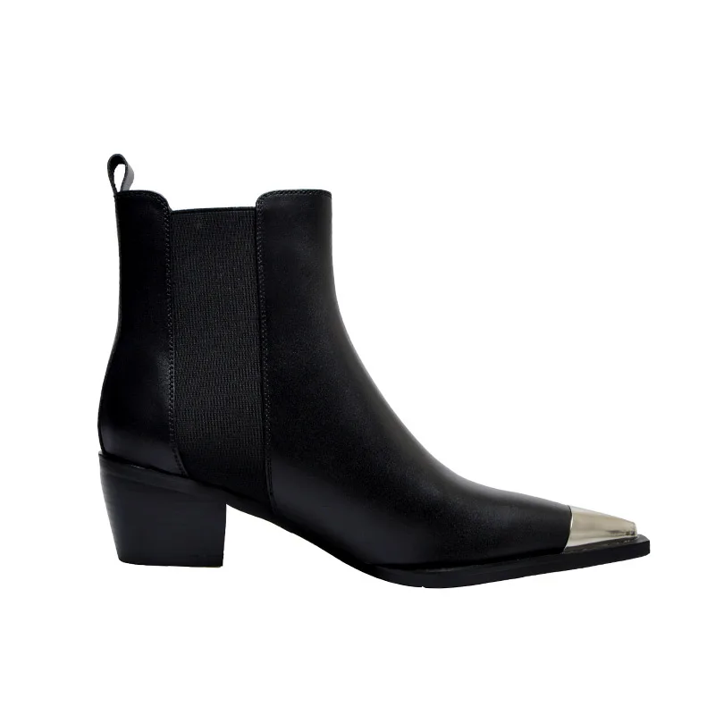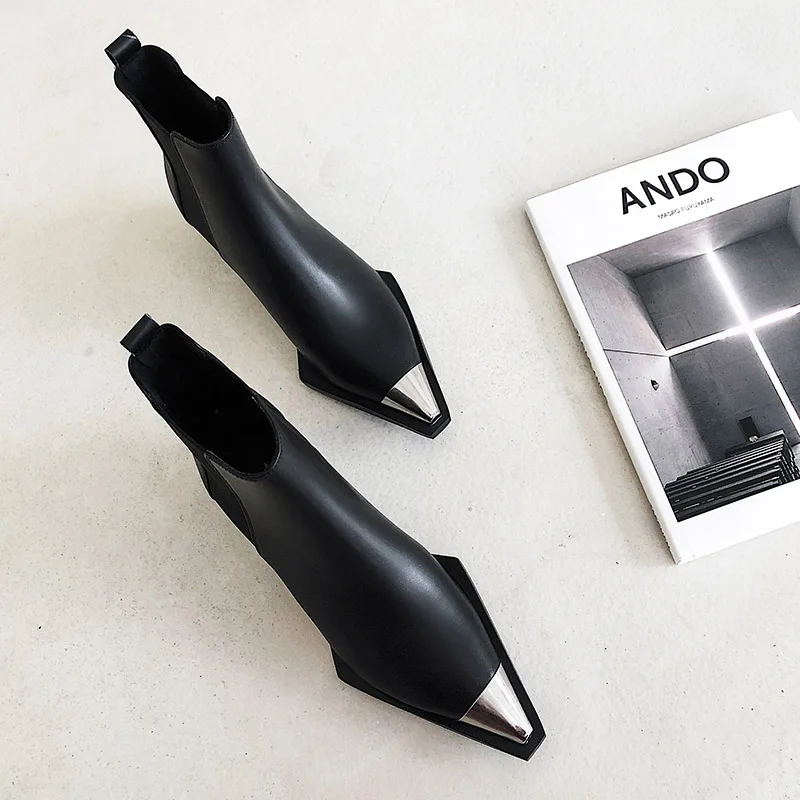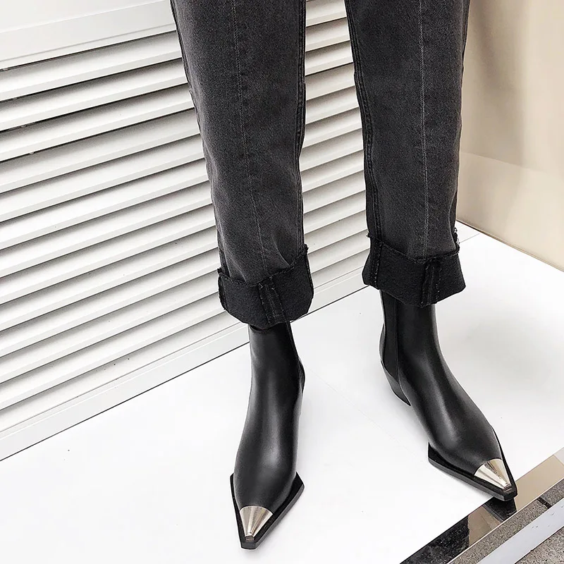 Женские ботильоны из натуральной кожи, с острым металлическим носко...