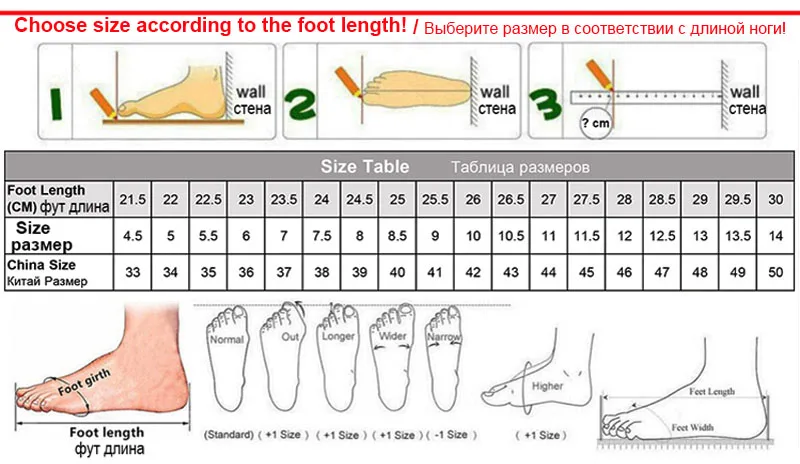 Пожалуйста, выберите размер в зависимости от длины стопы (см)