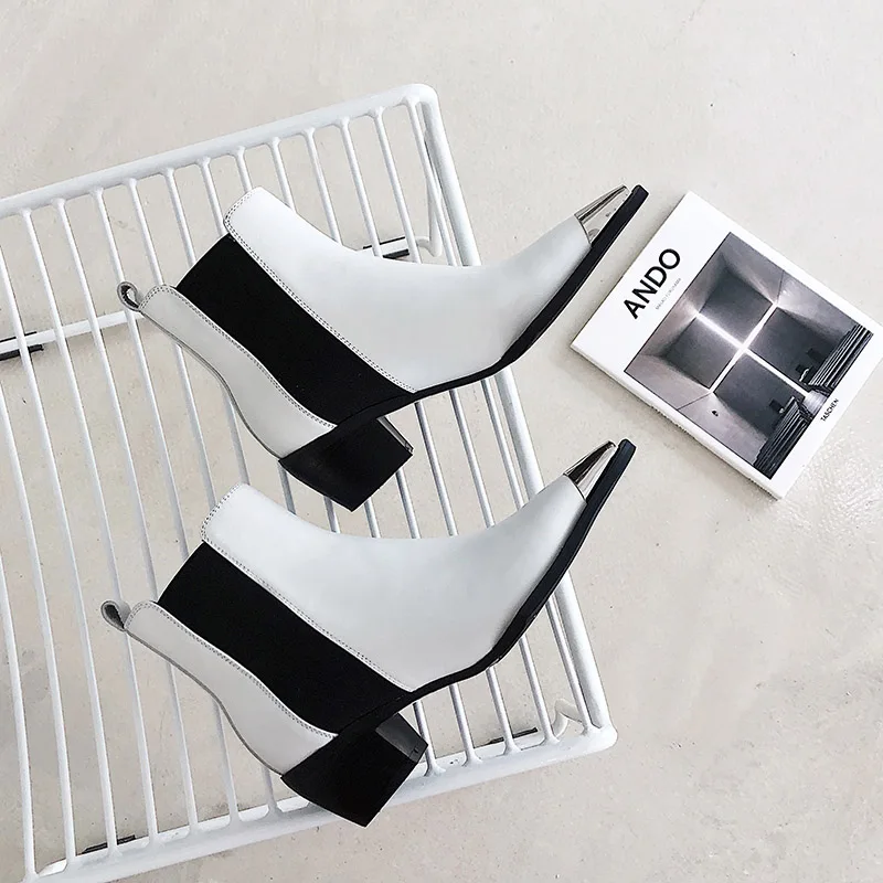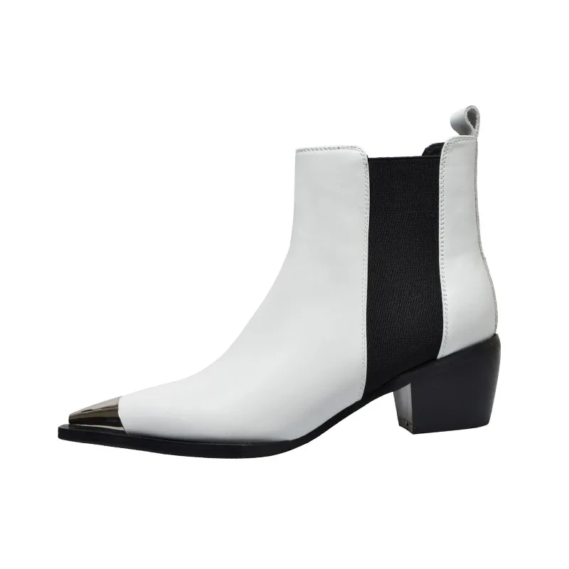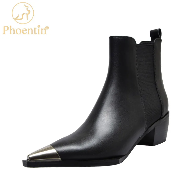 Женские ботильоны челси Phoentin из натуральной кожи, короткие ботинки на среднем каблуке, осенняя модная новая ковбойская Белая обувь FT1676