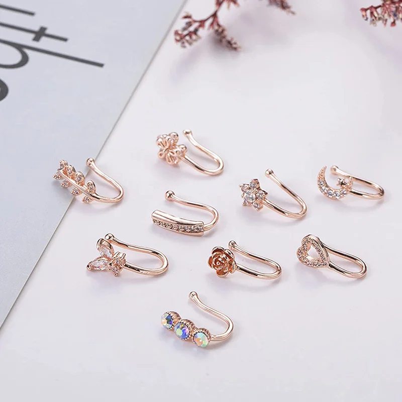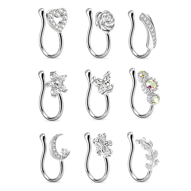 9 шт.компл. цветок бабочка Поддельные кольца для носа набор кристаллов без пирсинга манжеты для ушей поддельные ювелирные изделия для пирсинга губ