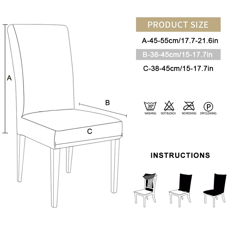 Материал: полиэстерРазмер: Высота спинки 45-55 см, ширина 38-45 см, длина сиденья 38-45 смЦвет: как на картинкеПосылка включает в себя: 1/2/4/6 шт. чехлы для стульевПримечание: Перед заказом измерьте ширину спинки стула и высоту спинки.Особенности:Полиэстер спандекс. Мягкий материал, удобный и устойчивый к морщинкам, не требует глажки.Более плотный трикотаж, более прочныйРастягивающийся материал, растягивающийся, быстро восстанавливается, надежно прилегает к пришитой эластичной кромке.Машинная стирка, легко моется и моетсяПусть ваш старый или уродливый стул будет выглядеть как новый и более красивый. Также может предотвратить царапины и укусы вашего стула.Он используется для отеля, свадебного банкета, ужина, встречи, торжества, церемонии, украшения семейной столовой и т. д.