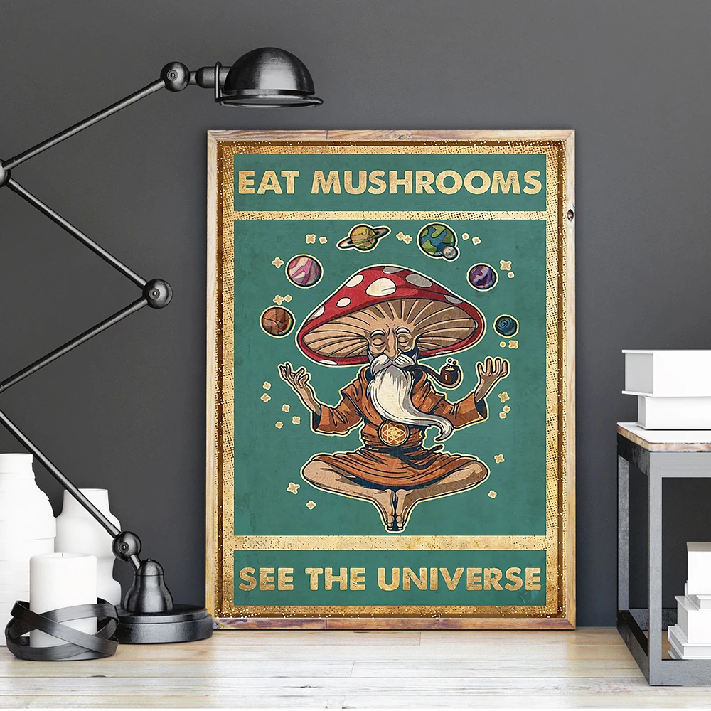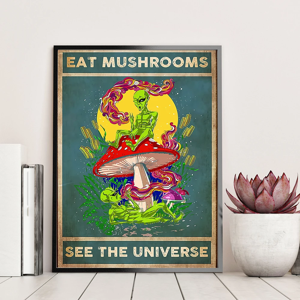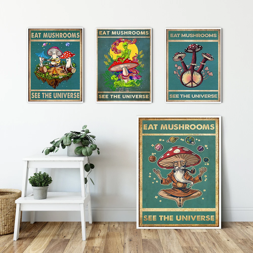 Картина съесть грибы, Постер See The Universe в стиле ретро, в стиле хиппи, Настенная картина, холст, гриб, волшебник, инопланетянин, картина для спальни, домашний декор