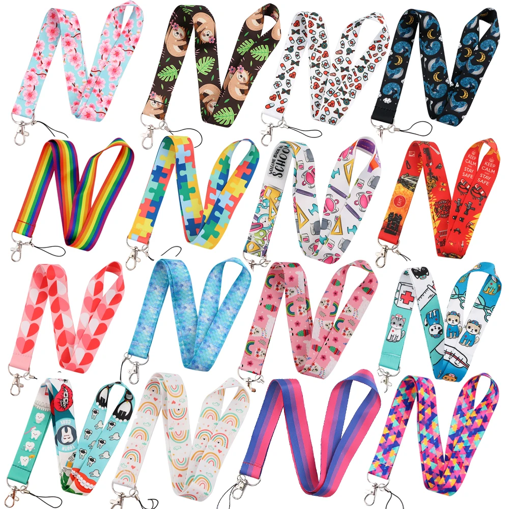 LT1118 100 стилей милые ремешки для Шеи Брелок держатель для ID карты пропуск веревка Лариат шнурок для ключей аксессуары