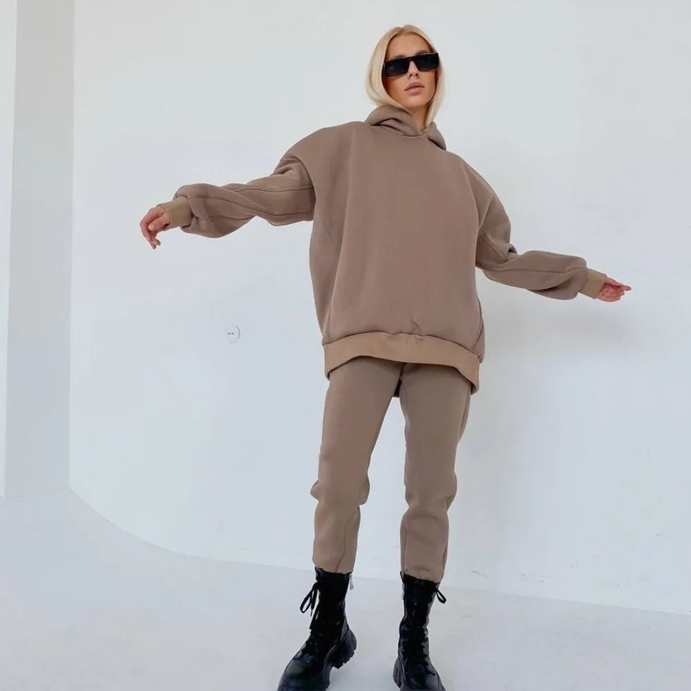 Женский флисовый спортивный костюм, осенне-зимние свободные костюмы...
