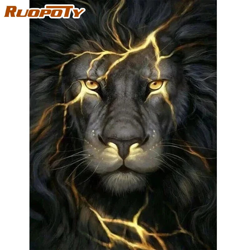 Алмазная картина RUOPOTY с животными, картина из квадратных страз 5...