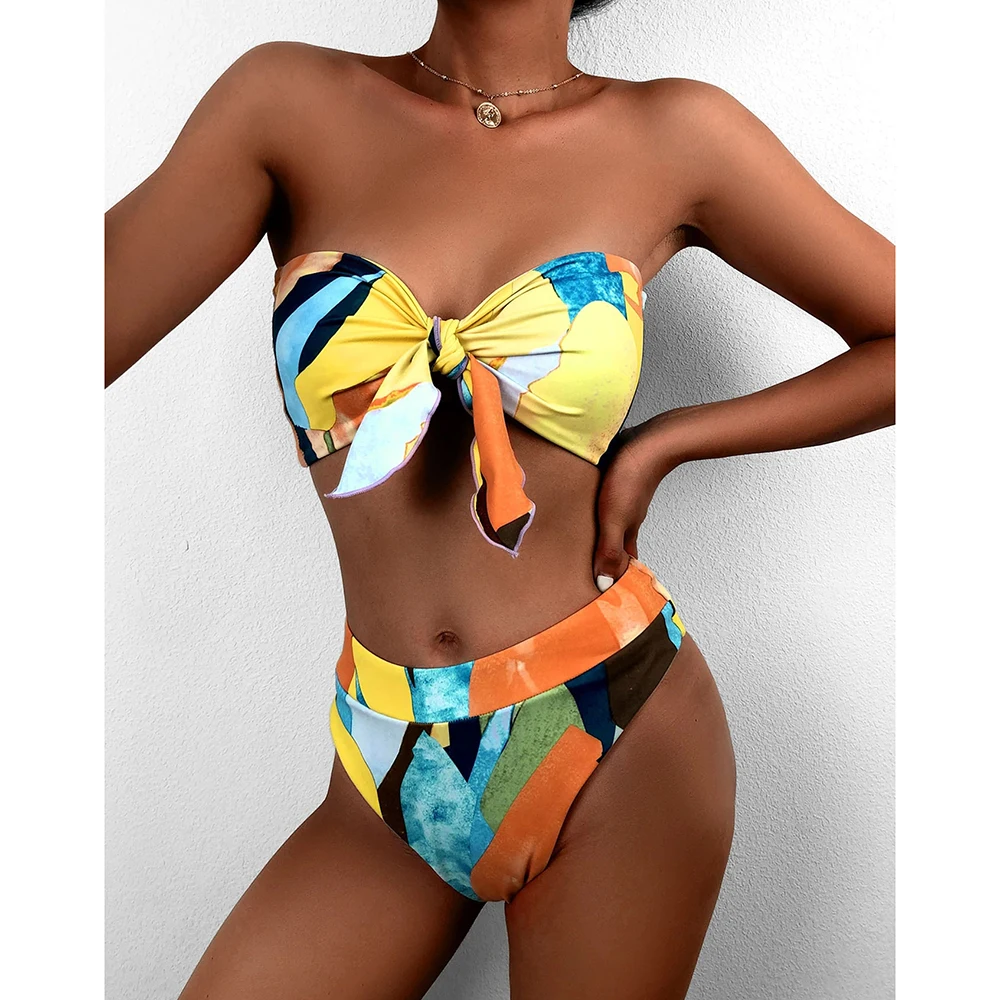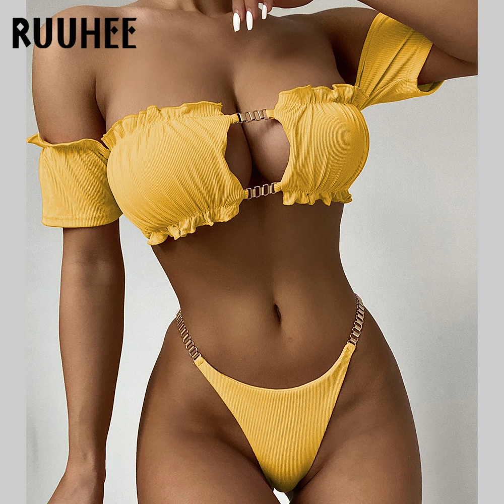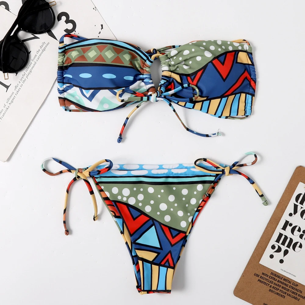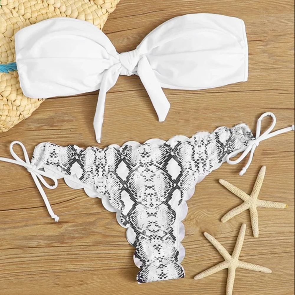 RUUHEE, бандо, бикини для женщин, 2021, купальник с низкой талией, однотонные леопардовые купальные костюмы, пляжная одежда, пуш-ап, купальник, сексуальное бикини для женщин
