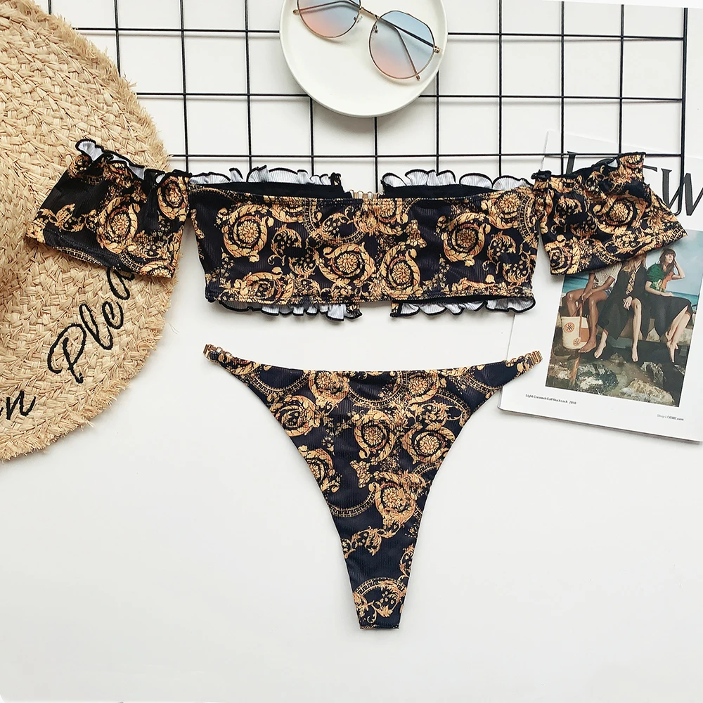 Женский купальник бикини в стиле ретро, купальный костюм с оборками...