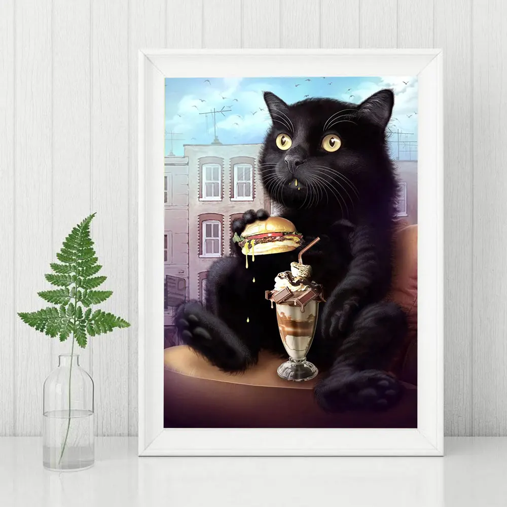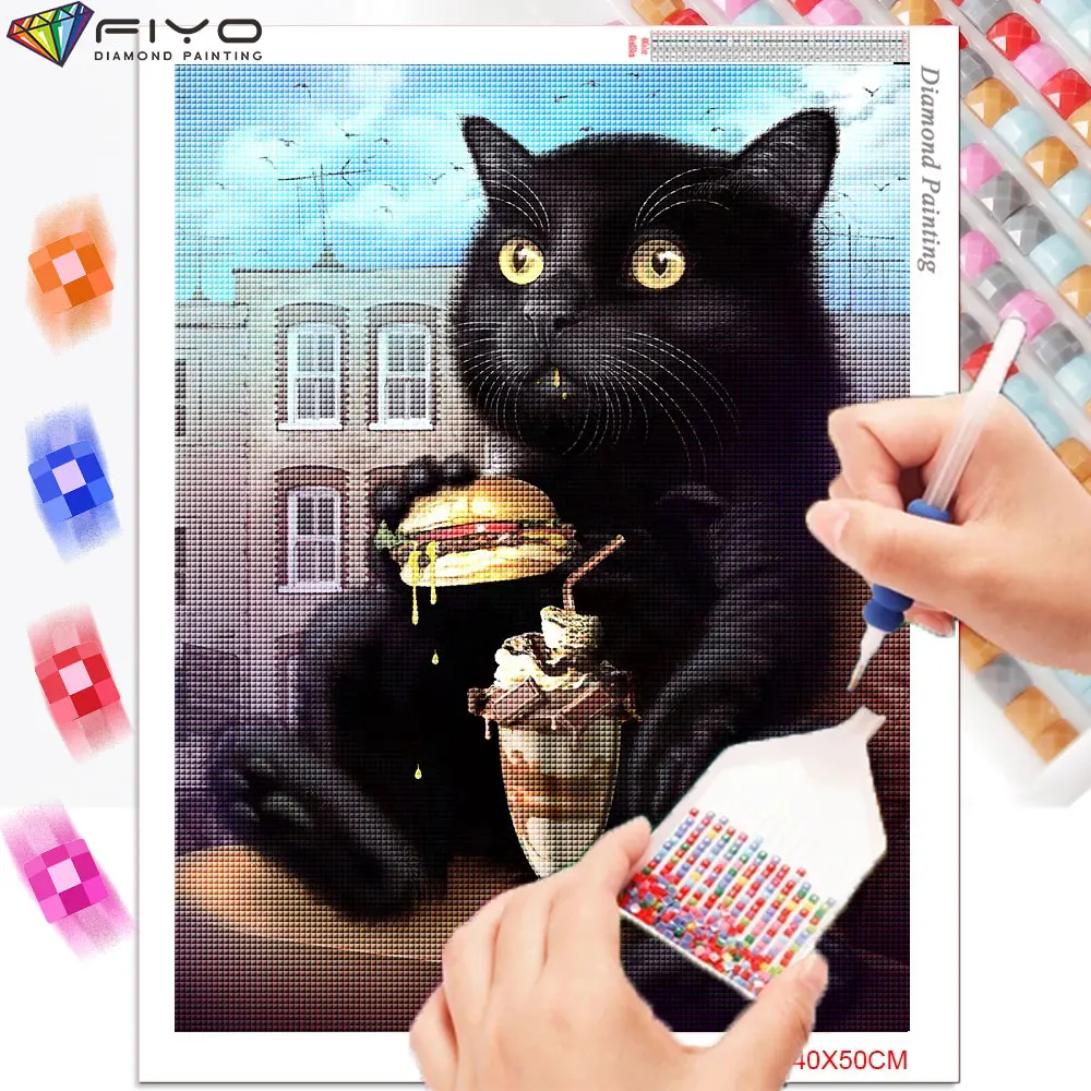 Алмазная живопись Мультяшные животные Кот искусство Алмазная вышивк...