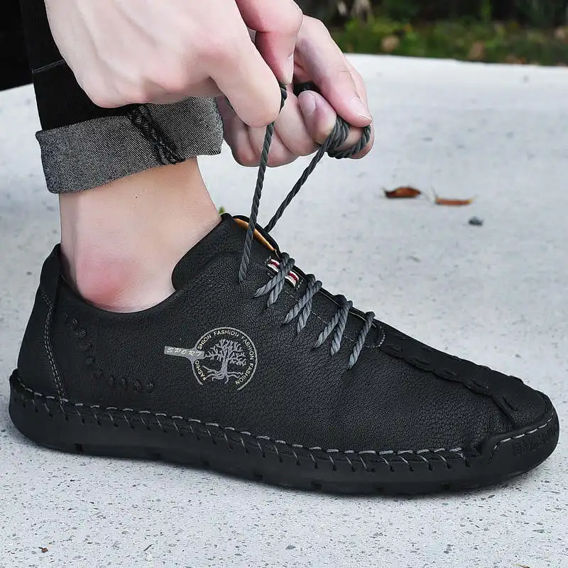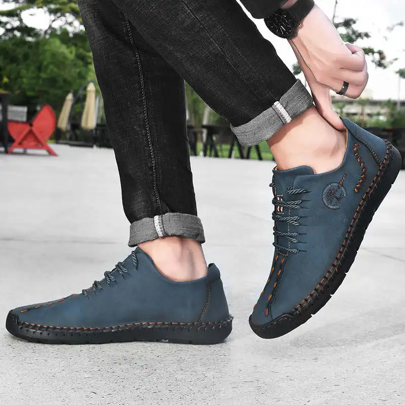 Мужские повседневные туфли из натуральной кожи, лоферы ручной работ...