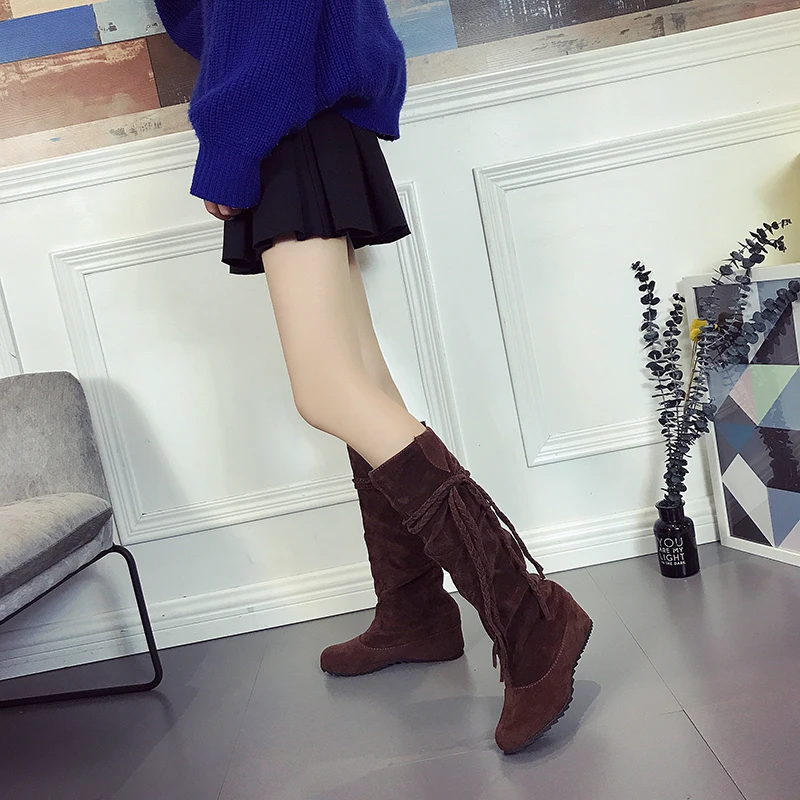 Женские сапоги на плоской подошве, с бахромой, до колена, Размеры 3...