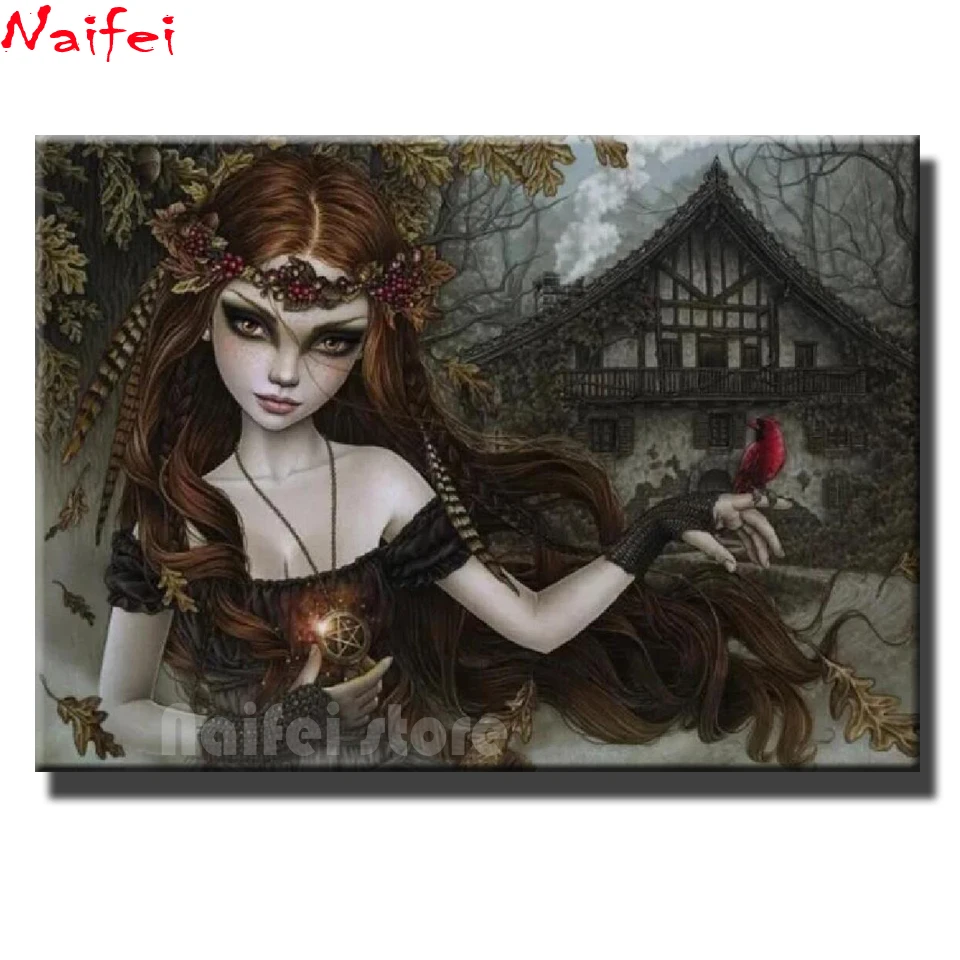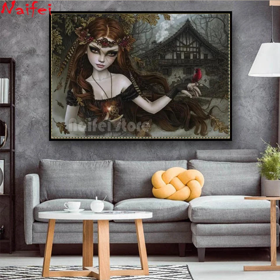 Полноразмерная круглая Алмазная картина сделай сам, мозаика Виктория, Франция, ангел, 5D Вышивка, девушка-вампир, Настенный декор, подарок на Хэллоуин