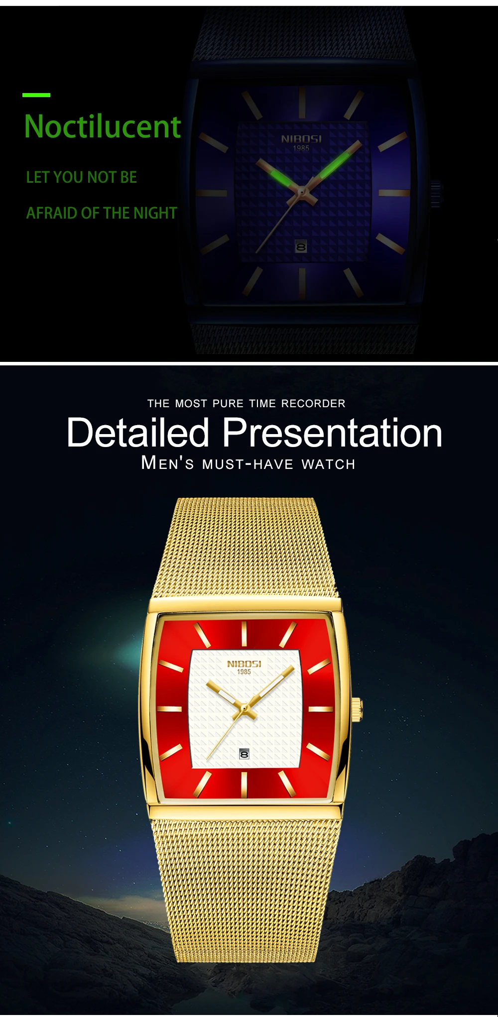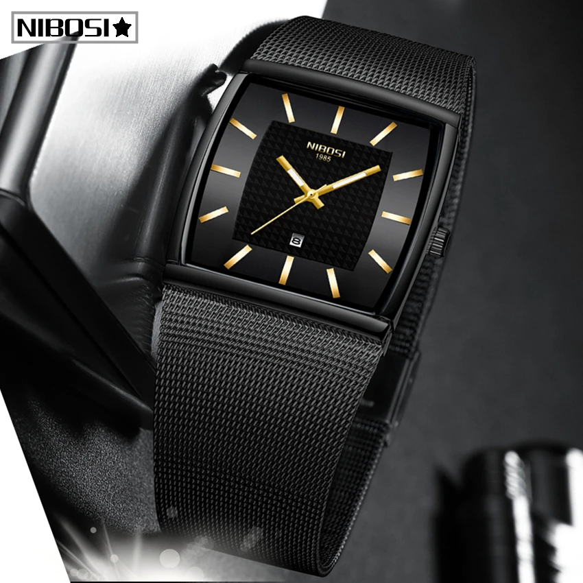 2021 мужские часы NIBOSI квадратного дизайна, Роскошные ультратонки...