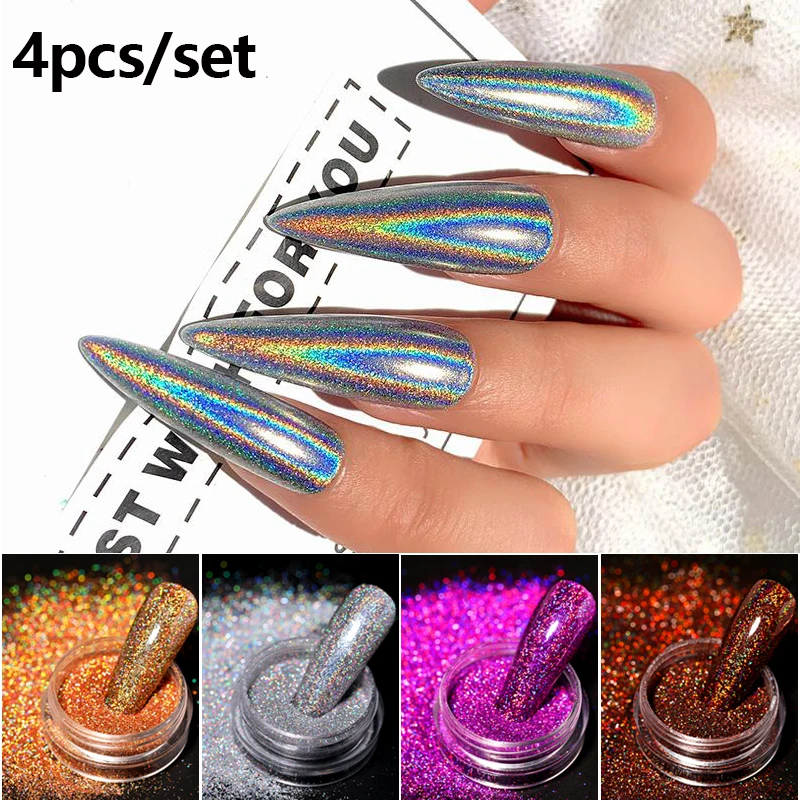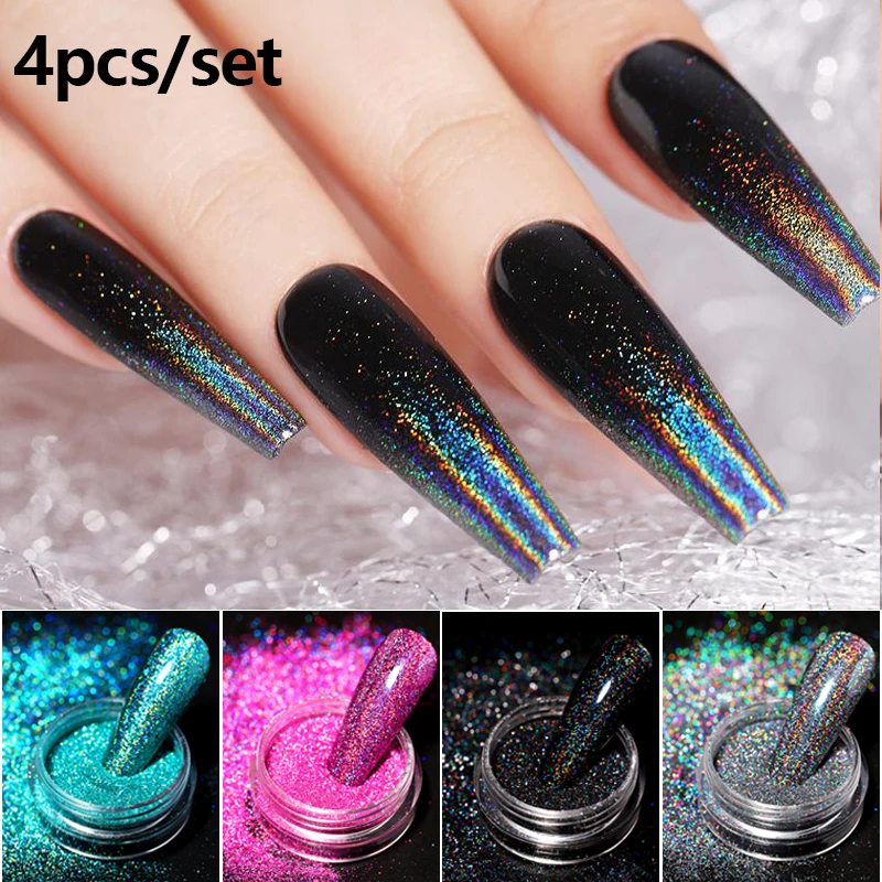 4 шт.компл. переливающийся Блестящий Порошок для ногтей с фиолетовым, красным, переливающимся пигментом, порошок для украшения ногтей, зеркальная хромированная блестящая пудра