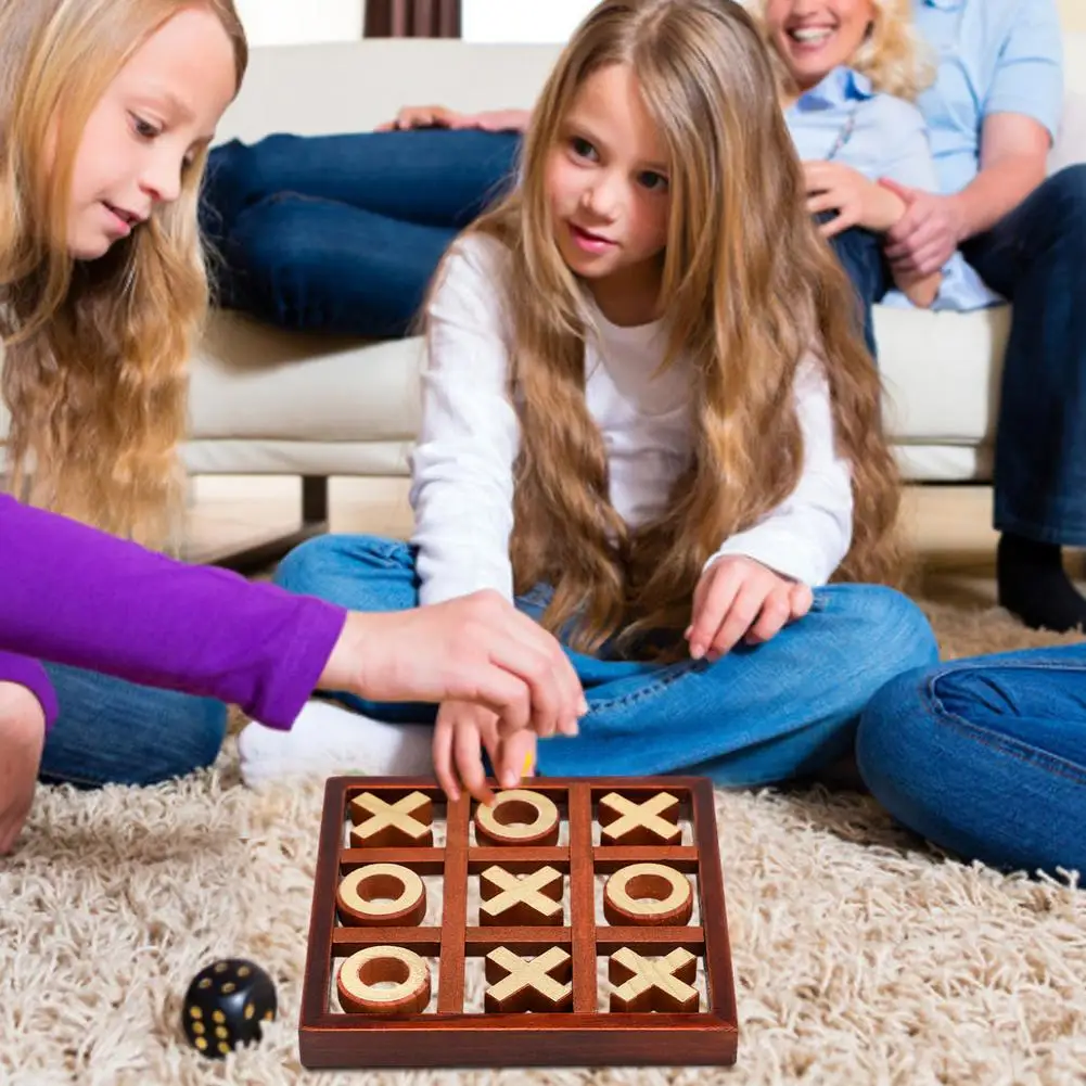 Набор деревянных настольных игр с крестами и крестиками для всей семьи, двойная Битва с тикс-носками, игра-головоломка для взаимодействия с родителем и ребенком