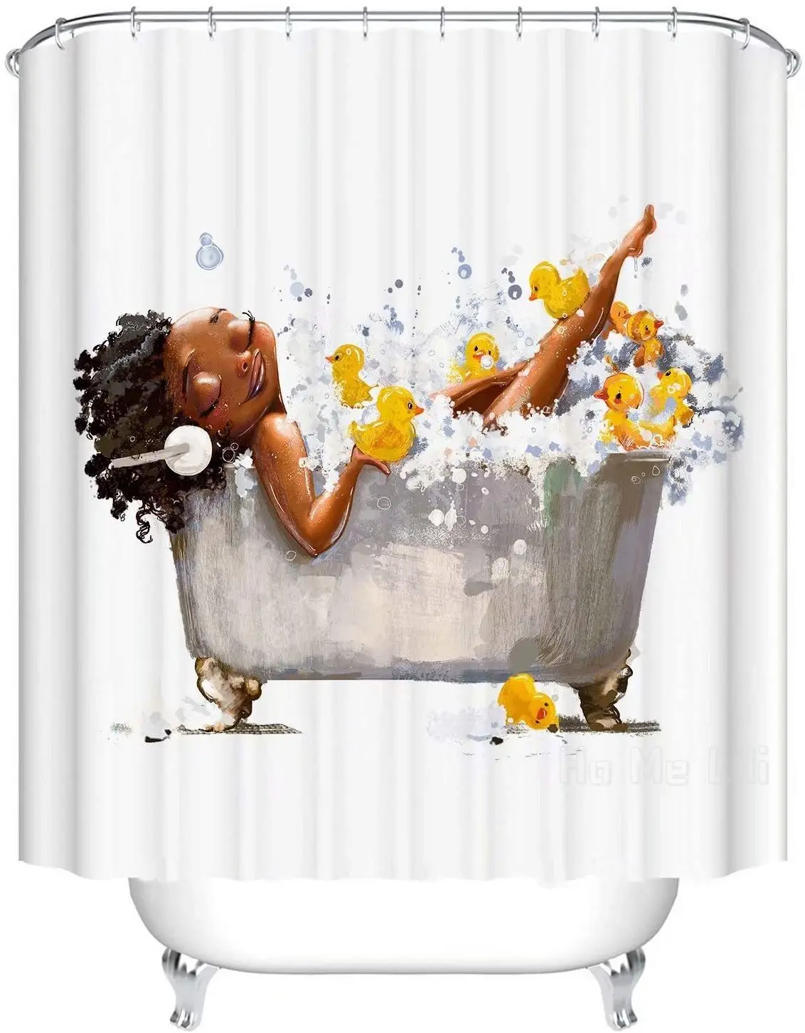Занавески для душа с крючками женские, водонепроницаемые белые занавески для ванной комнаты, в Африканском и американском стиле, Симпатичные черные
