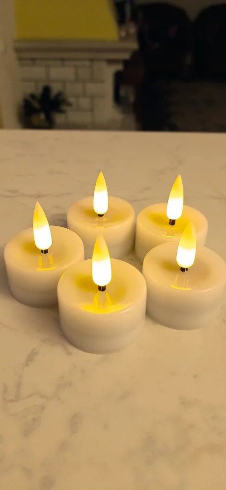 Классные свечки! огонёк желтый, яркий, в темноте освещает довольно неплохо, как настоящие. Пришли сразу с батарейками. Единственное - по-моему, мерцают сильнее, чем настоящие, это мерцание не очень понравилось, утомляет. Только за это 4 звезды. А в целом очень довольна, рекомендую!
