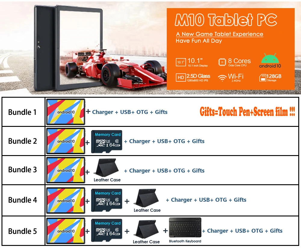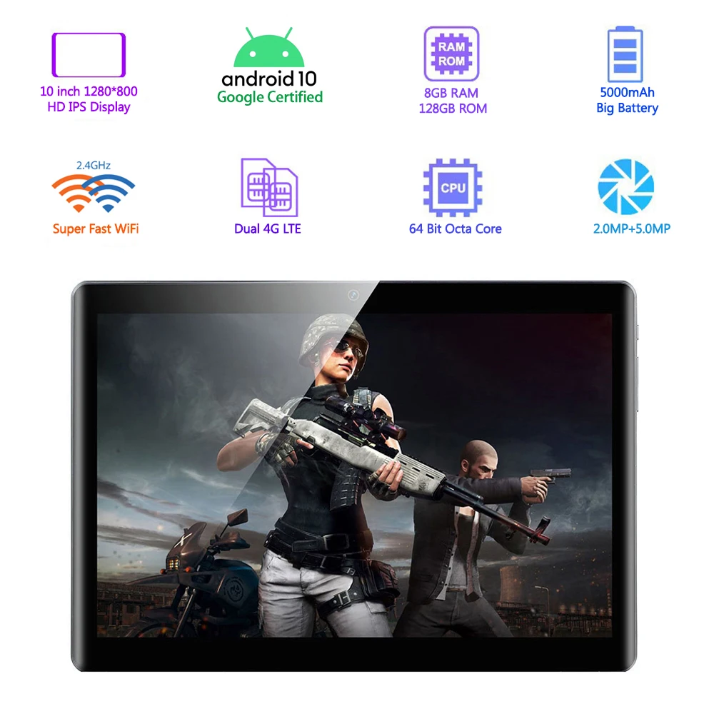 Восьмиядерный процессор + 8 Гб ОЗУ 128 Гб ПЗУ + новейшая система Android 10.0 + WIFI 4G LTE сеть + 10 дюймов 1280x80 0 IPS экран + порт USB Type C