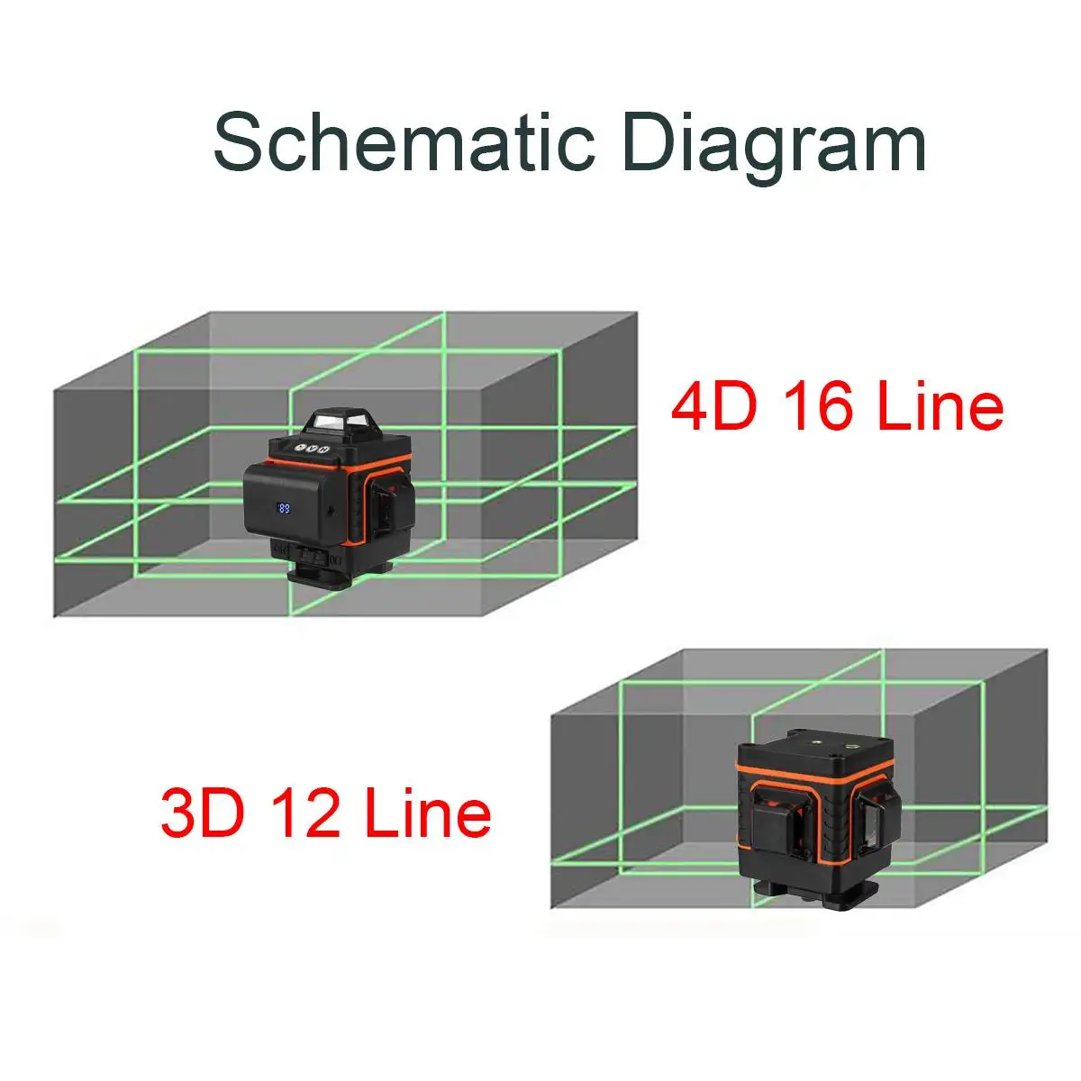 Лазерные уровни 16 линий 4D светильник горизонтальный и вертикальный крест 360 автоматический самонивелирующийся настенный напольный лазерный уровень светодиодный дисплей и штатив
